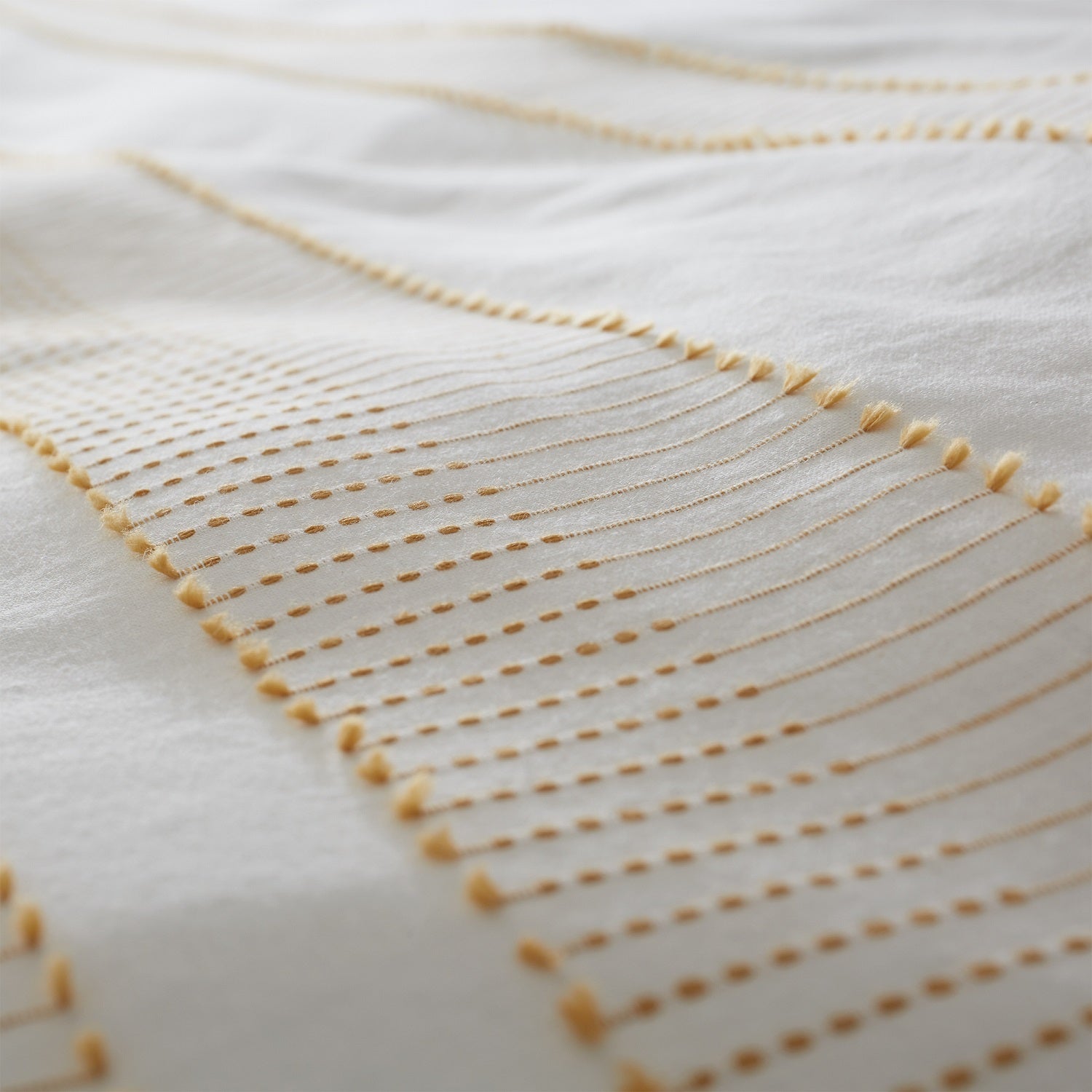 Cairns Tufted Cotton Jacquard Duvet Cover Set, Double, White & Ochre
