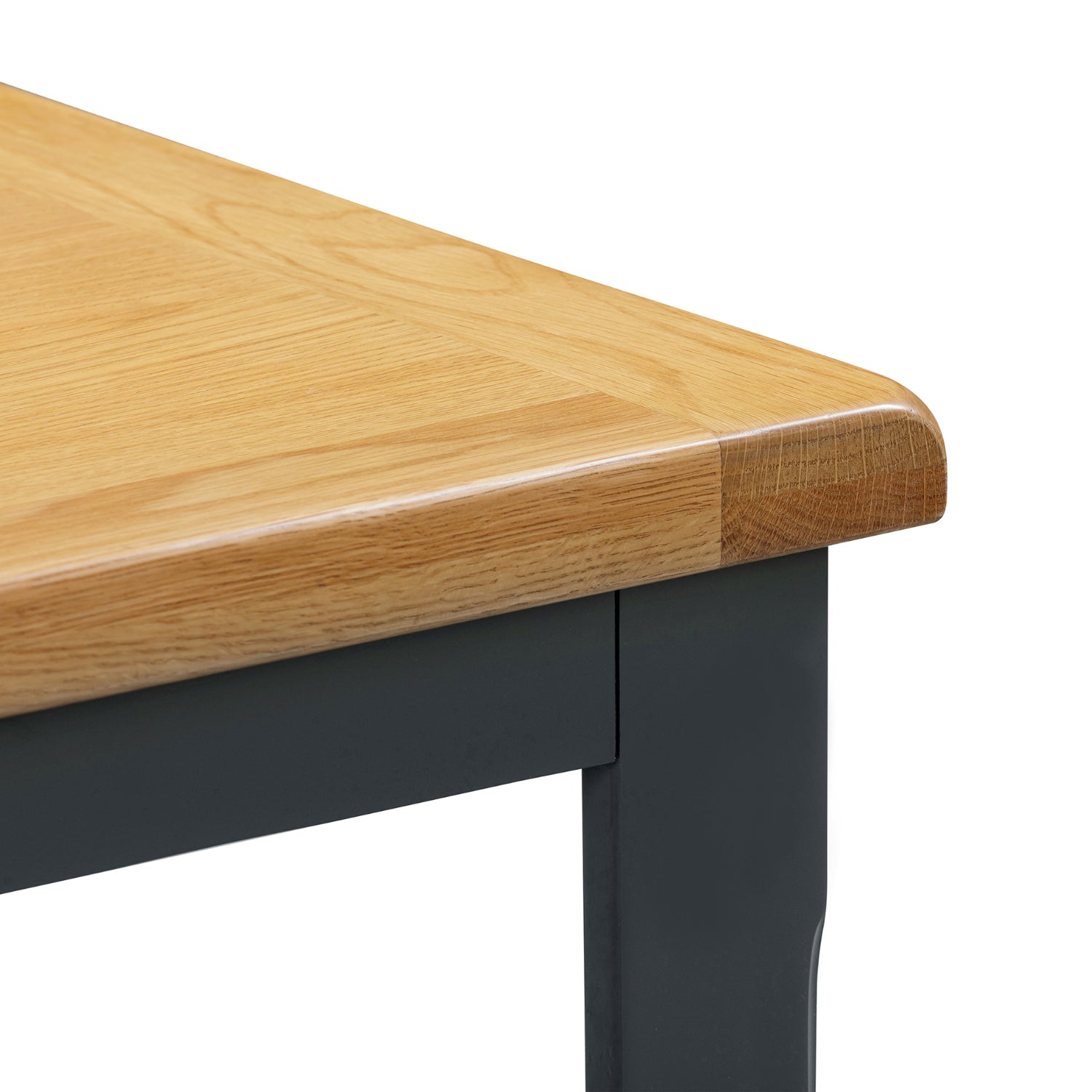 - Elegant Two-Tone Design – Dark-painted base contrasts beautifully with the warm oak tabletop.