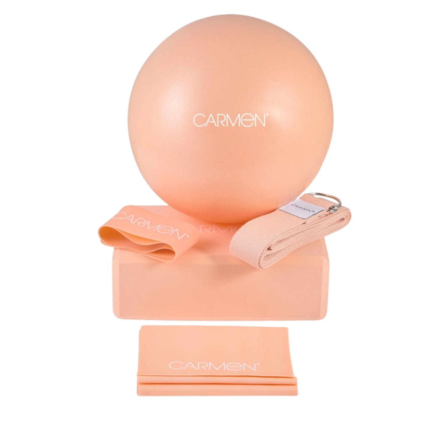 Begin your fitness journey with the Carmen 5-Piece Peach Yoga Starter Kit, a versatile set designed for both newcomers and seasoned practitioners. This all-in-one kit equips you with the tools to improve flexibility, strength, and balance.