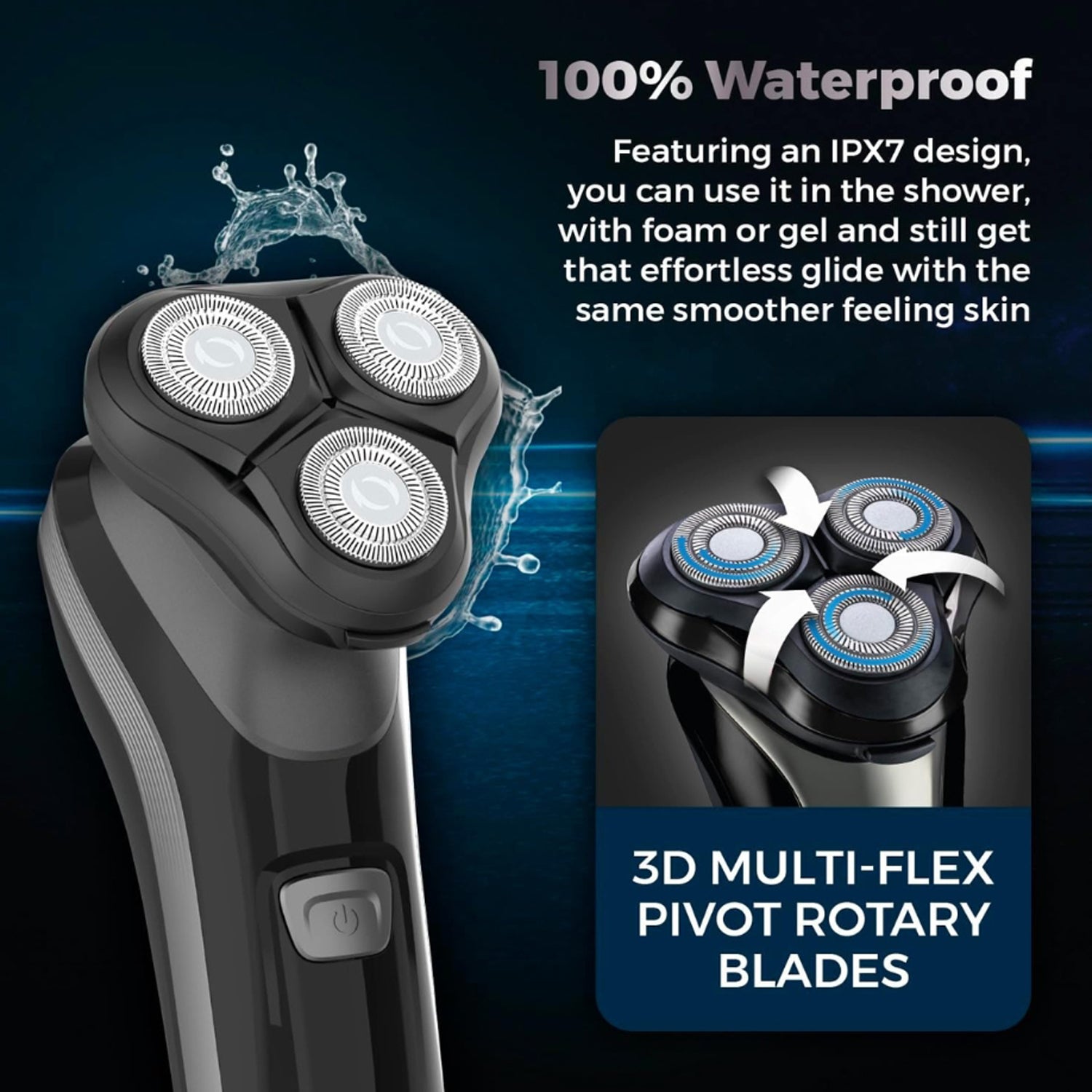 - 3D multi-flex pivot triple-headed rotary blades deliver a cutting-edge design to capture every hair faster than ever before.