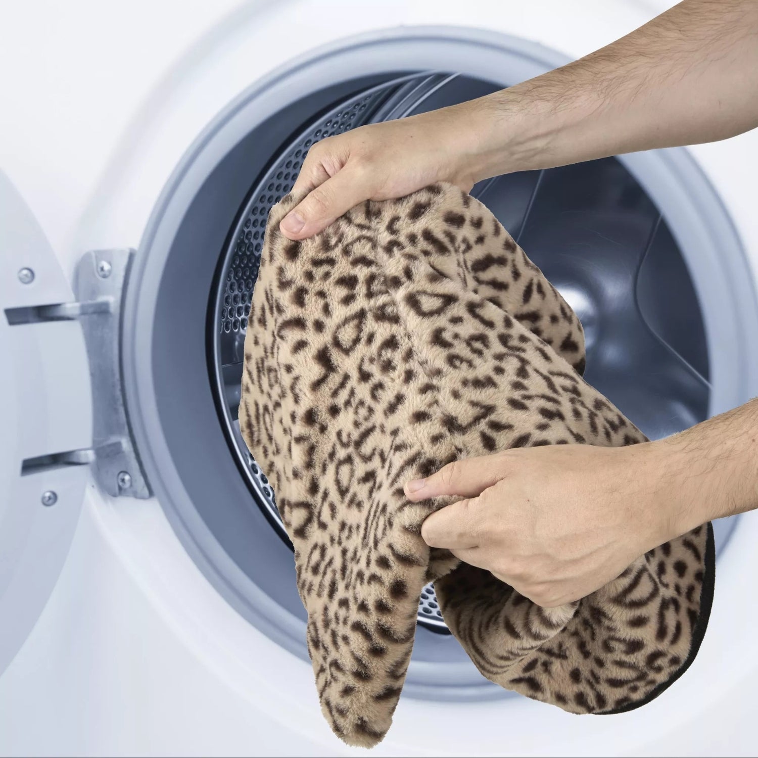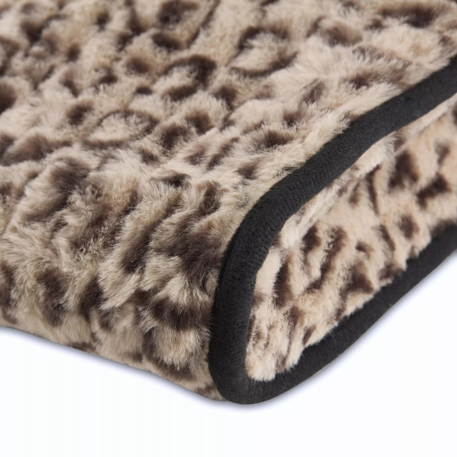- Ultra cosy faux rabbit-fur exterior with leopard-print design for stylish comfort.