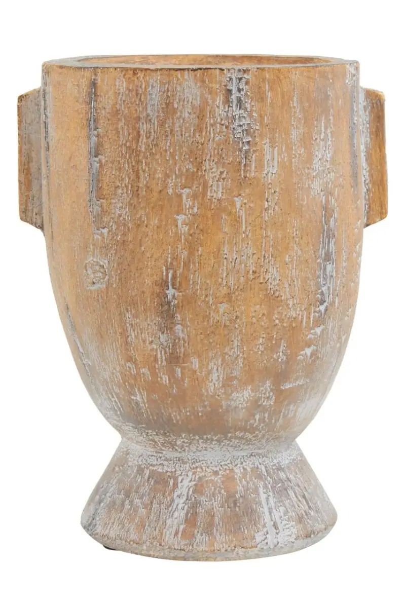 This large textured natural planter, crafted from magnesia fibreglass, features an abstract face design that adds character, depth, and drama to your home.