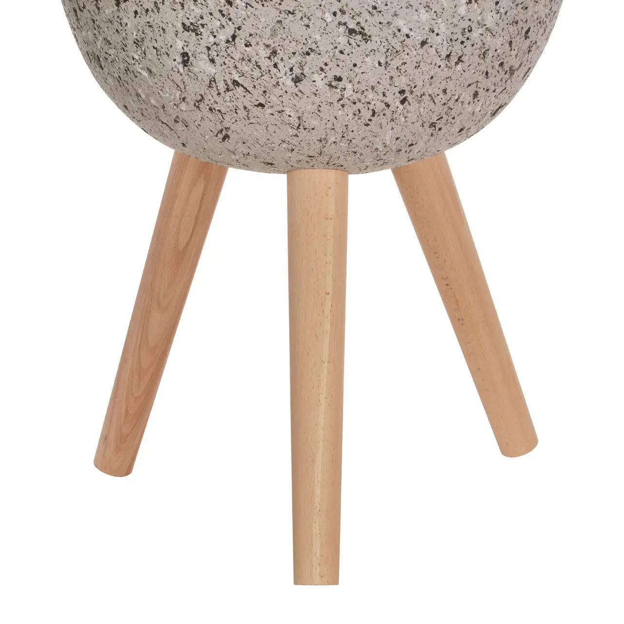 This medium rounded planter features a textured grey color with speckled pattern, supported by three smooth beechwood legs. Ideal for displaying small plants or as a neutral accent.