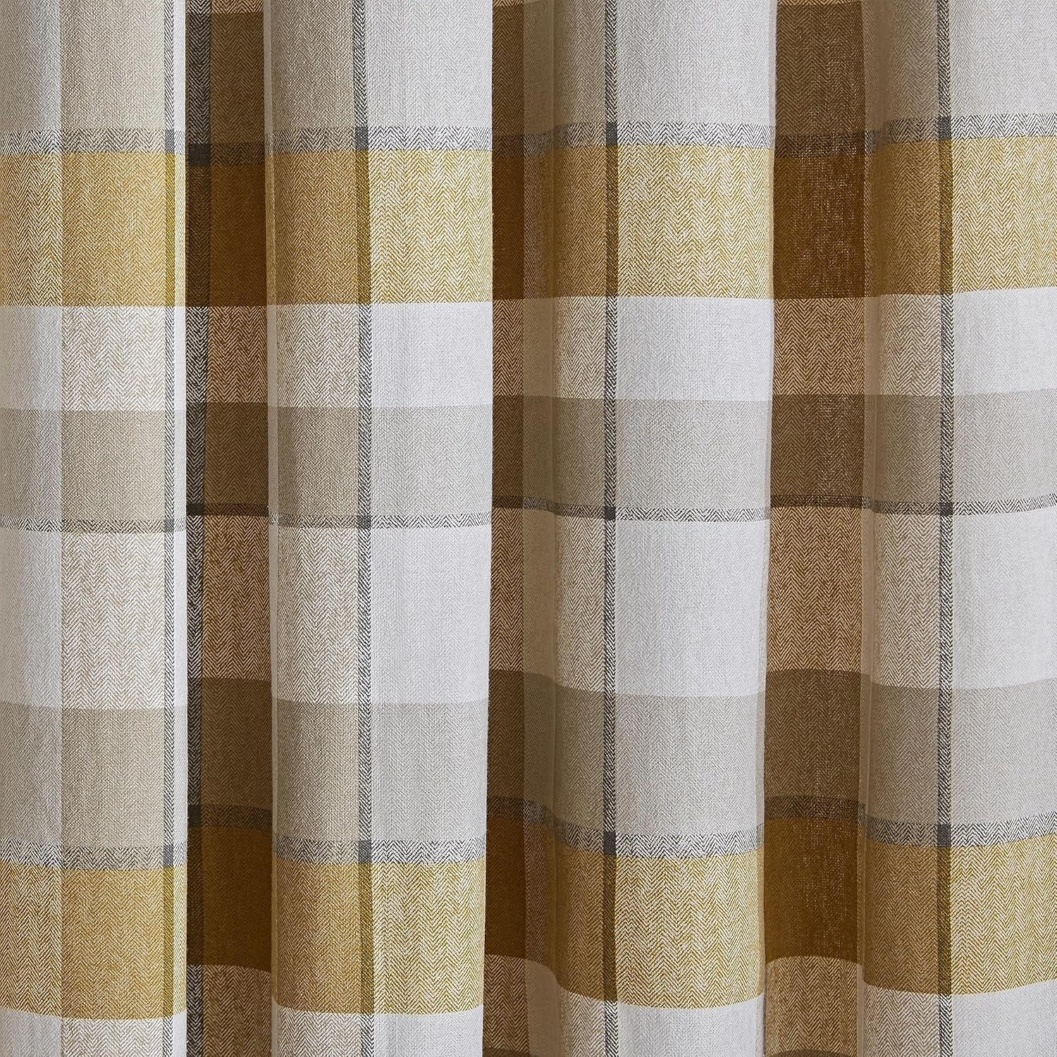 Catherine Lansfield Brushed Cotton Thermal Check Curtains, 66x54", Ochre
