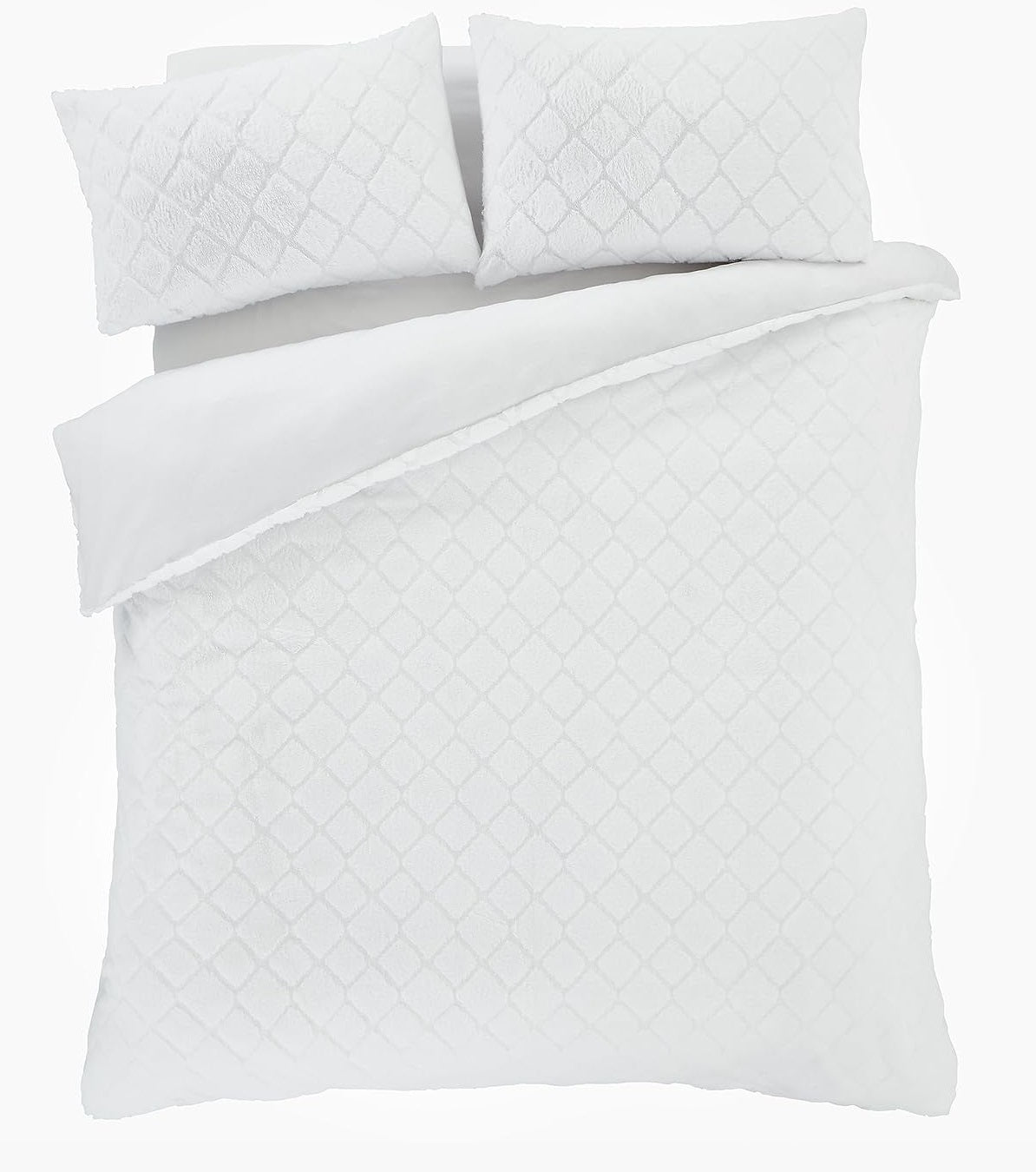 - Catherine Lansfield Cosy Diamond Faux Fur Quilt Cover Set