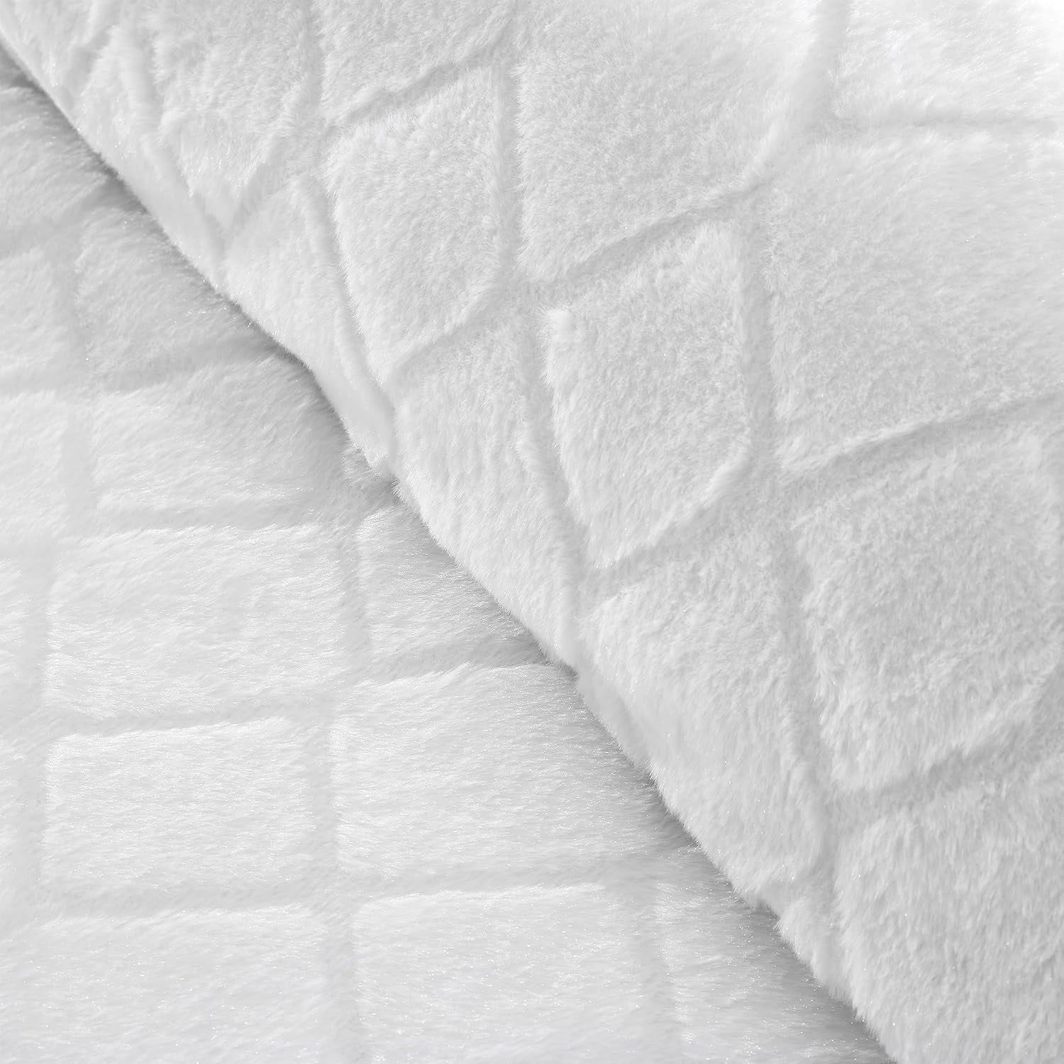 Indulge in luxurious comfort with our soft and cosy duvet cover set featuring carved diamond shapes on a faux fur base. The shapes create beautiful, sophisticated texture, while the faux fur provides ultimate warmth and comfort. Material is 100% polyester with plain fleece reverse and it is machine washable.