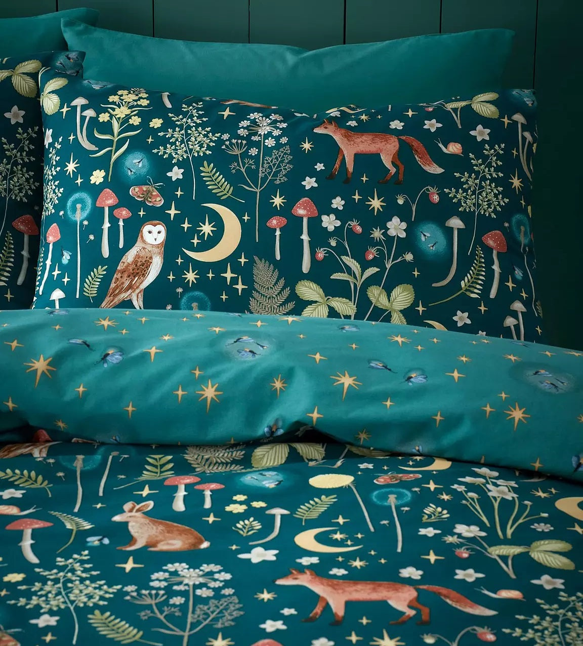 Catherine Lansfield Enchanted Twilight Duvet Cover Set, Double, Forest Green