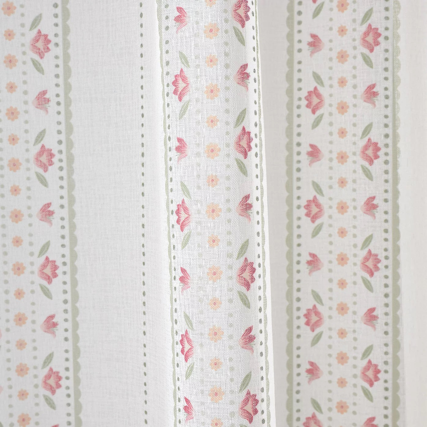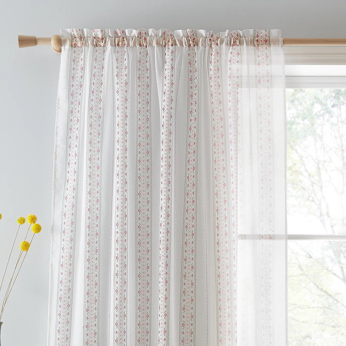 This luxury, high quality and slot top voile curtain panel has country floral stripes design on it. It allows natural light which lets in the outdoor light while maintaining a sense of privacy. Material is 100% Polyester, it has a slot rod top header which are ready-made and easy to hang. It is hand wash only.