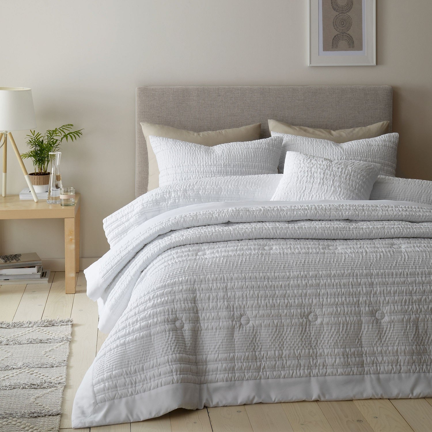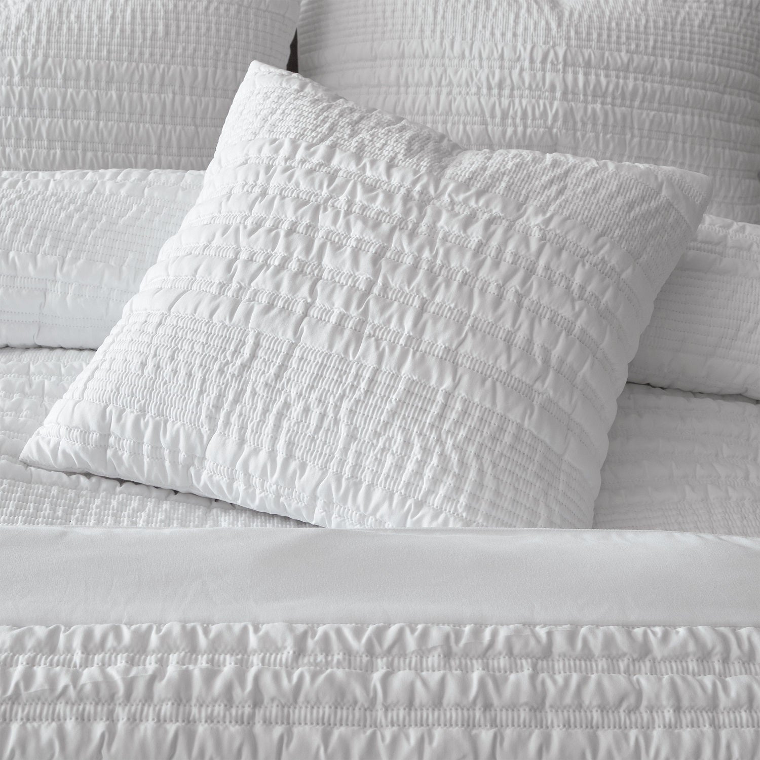 Combing modern styling with classic textures, freshen up your look with seersucker and ruche tuck banded detailing. It has a zip opening/closure. Material: 100% Polyester. Size: 18" x 18" (45cm x 45cm) (Approx). It is spot clean only. This set has 1 x cushion cover.