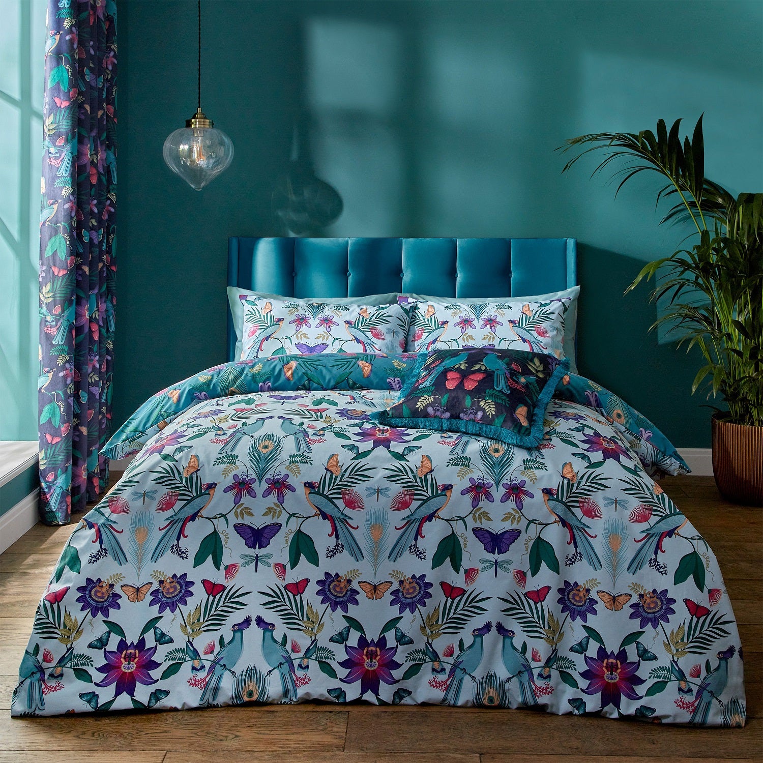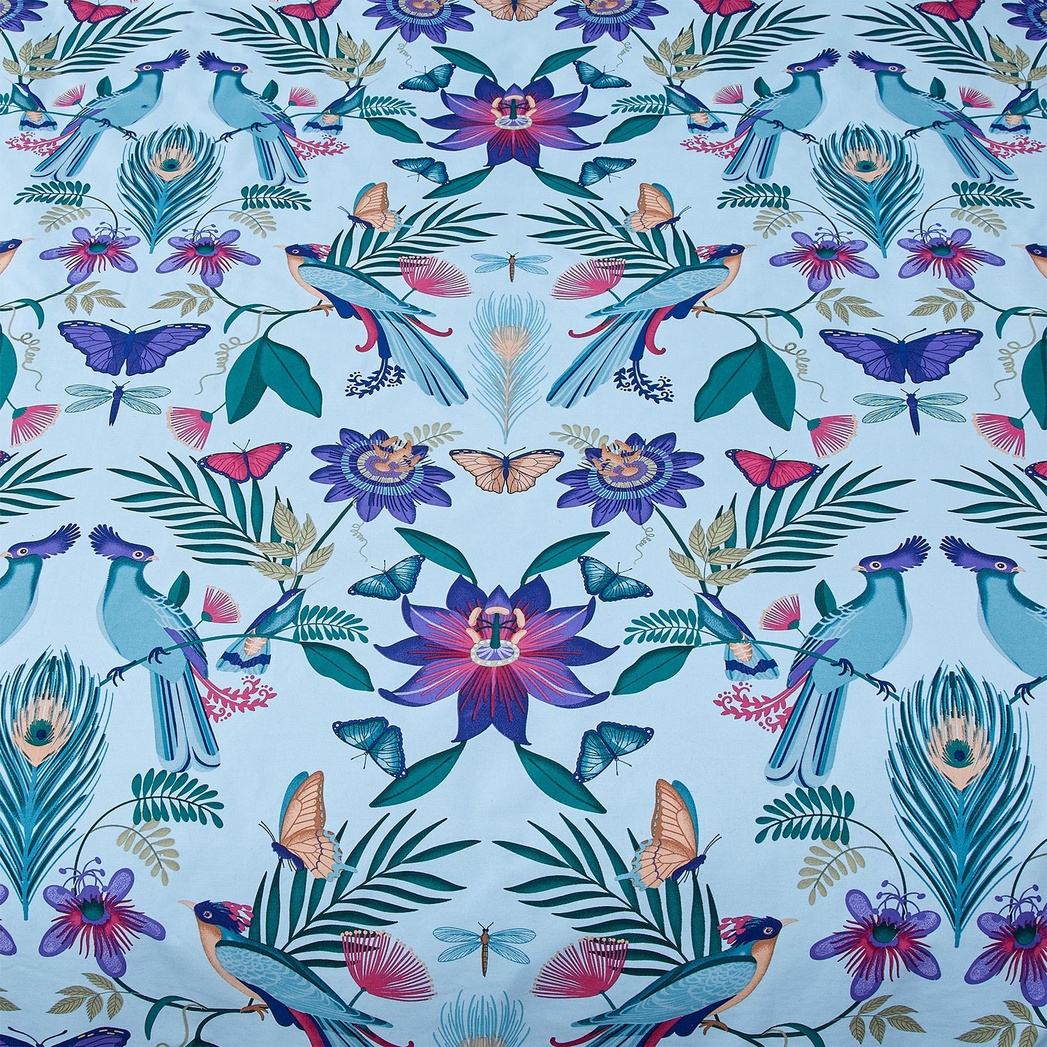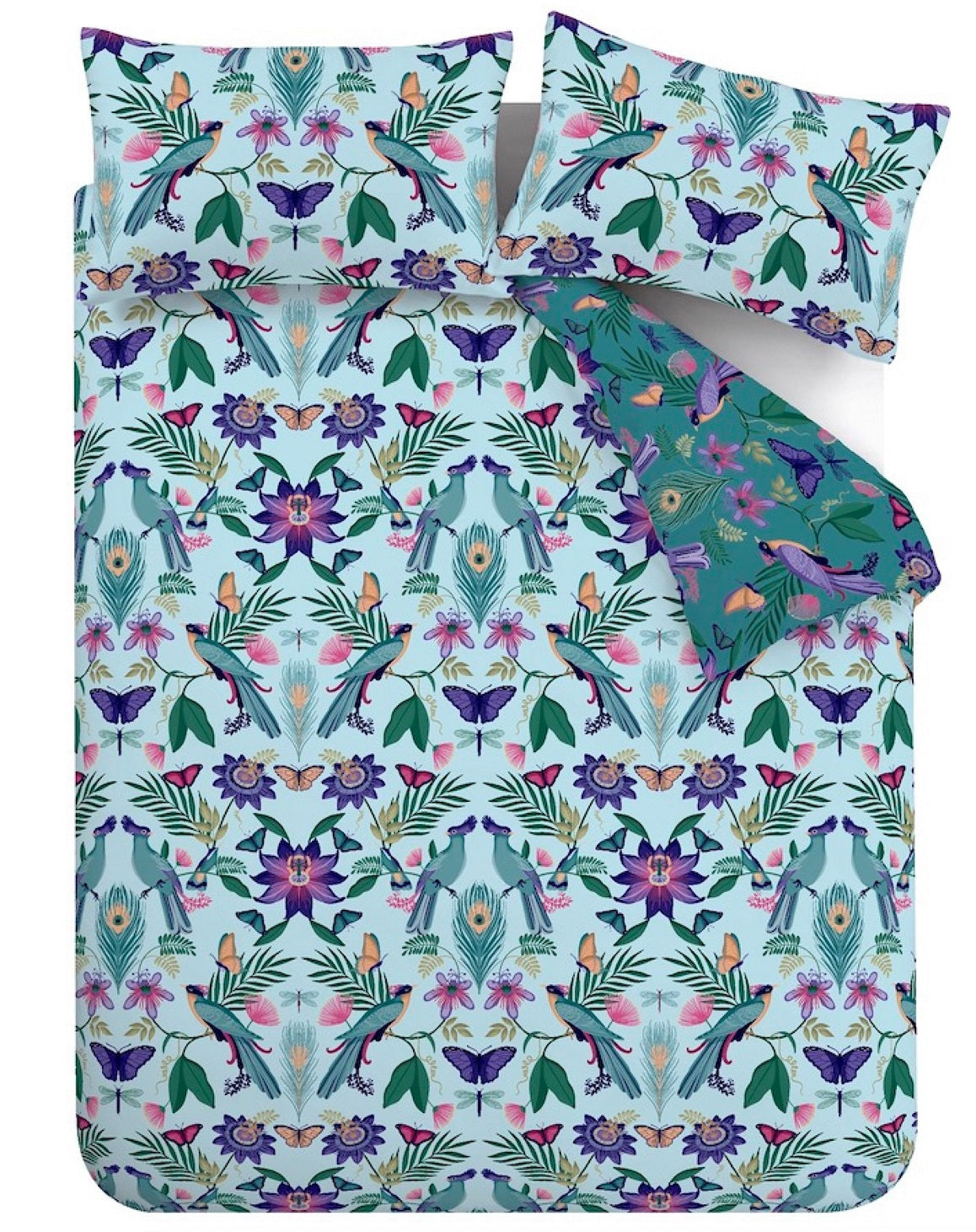 Catherine Lansfield Mya Tropical Birds Duvet Cover Set, Double, Duck Egg