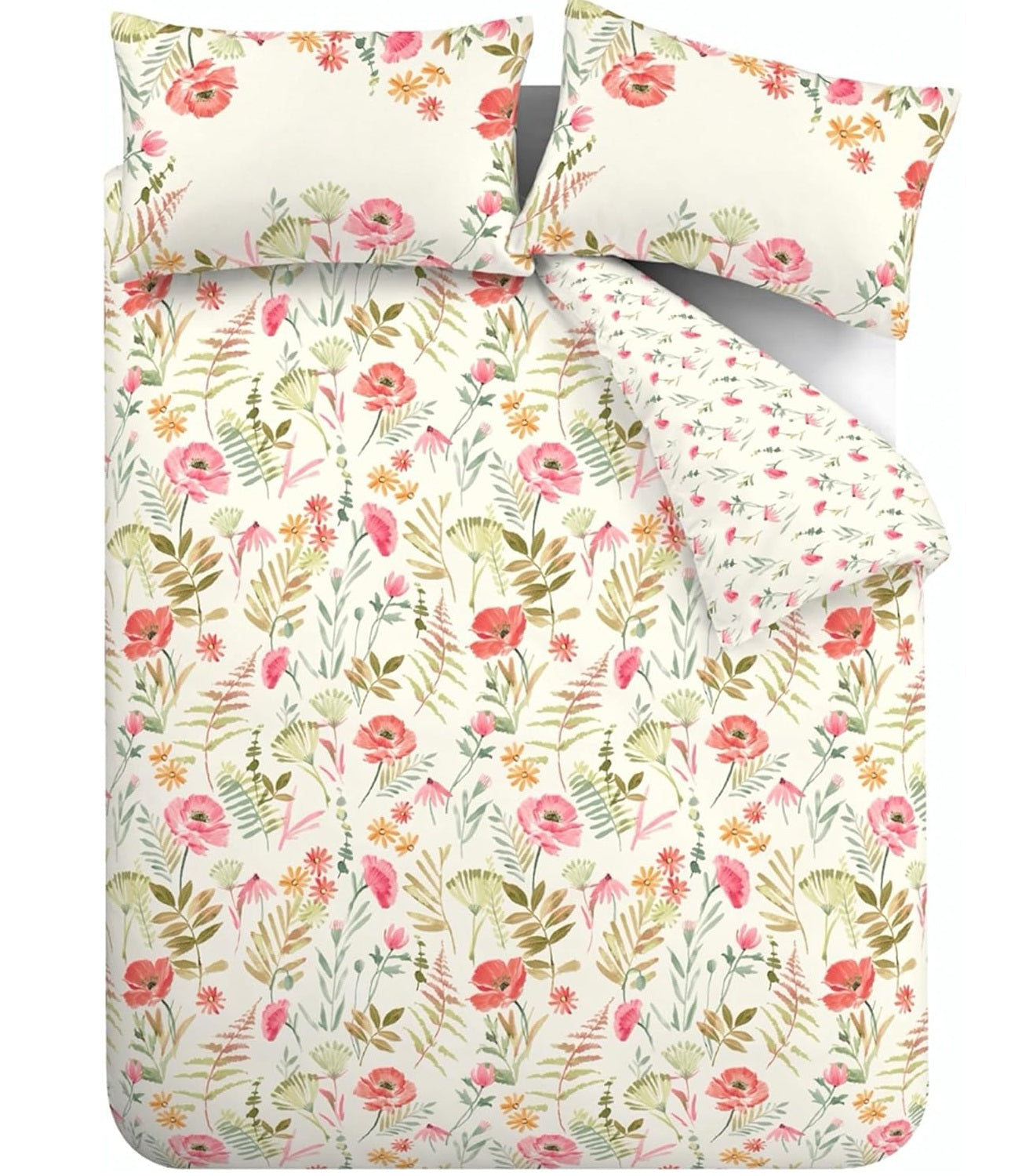 This easy care and fully reversible duvet cover set has poppy floral design with lush green foliage which can bring the splendour of a blooming garden into your bedroom. Material: 48% Cotton & 52% Polyester, it is machine washable. This set includes 1 x double duvet cover and 2 x pillowcases, duvet cover size is 200cm x 200cm (79" x 79") (Approx) and pillowcase size is 48cm x 74cm (19" x 29")(Approx).