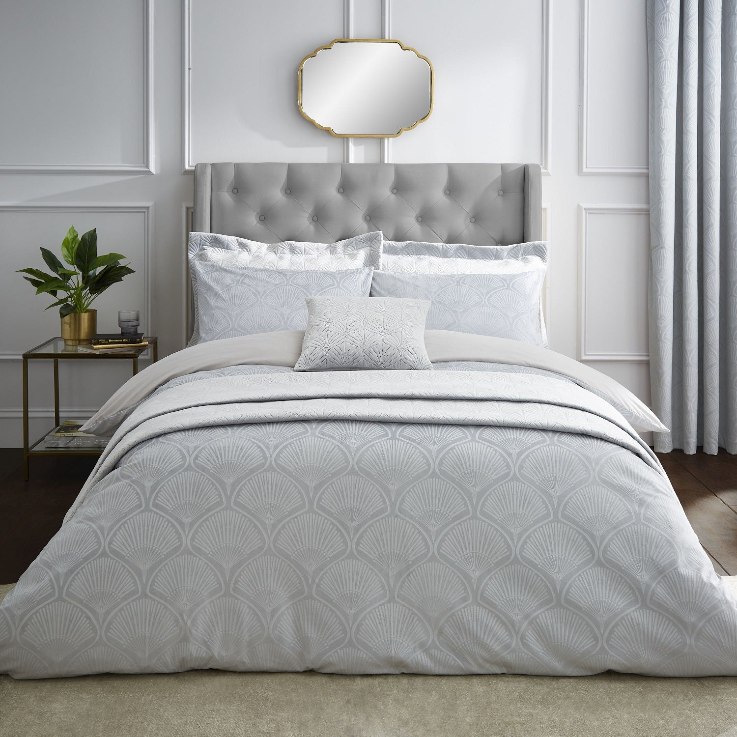 Catherine Lansfield Velvet Scallop Shells Cushion Cover - Silver Grey