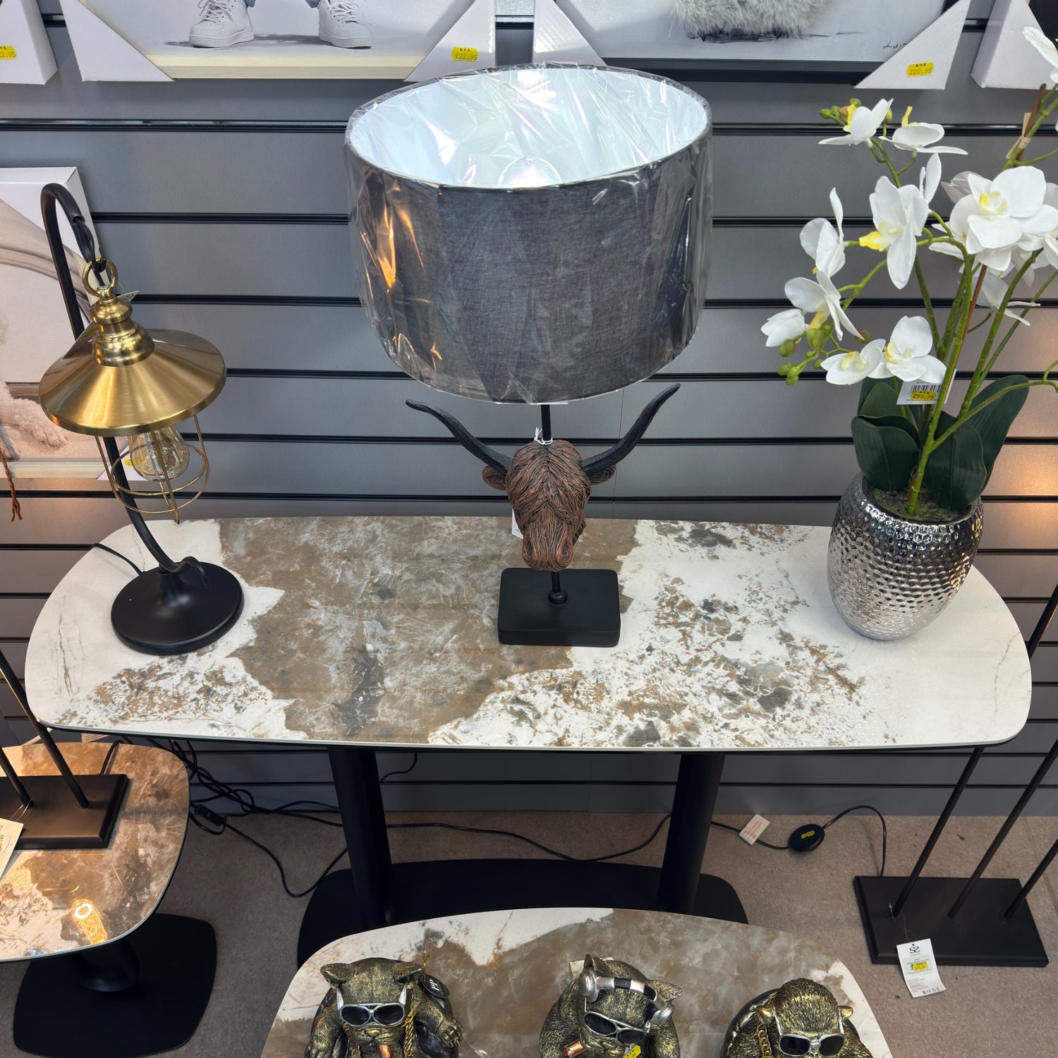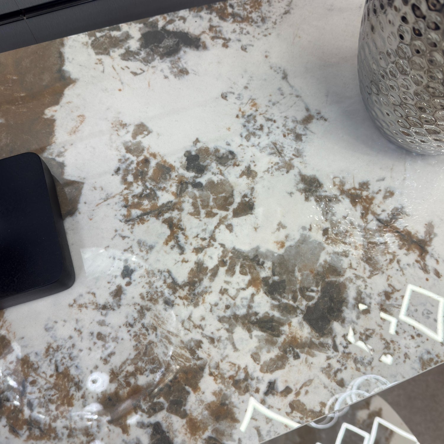 Ceramic Glass Marble Effect Top Black Metal Frame Console Table
