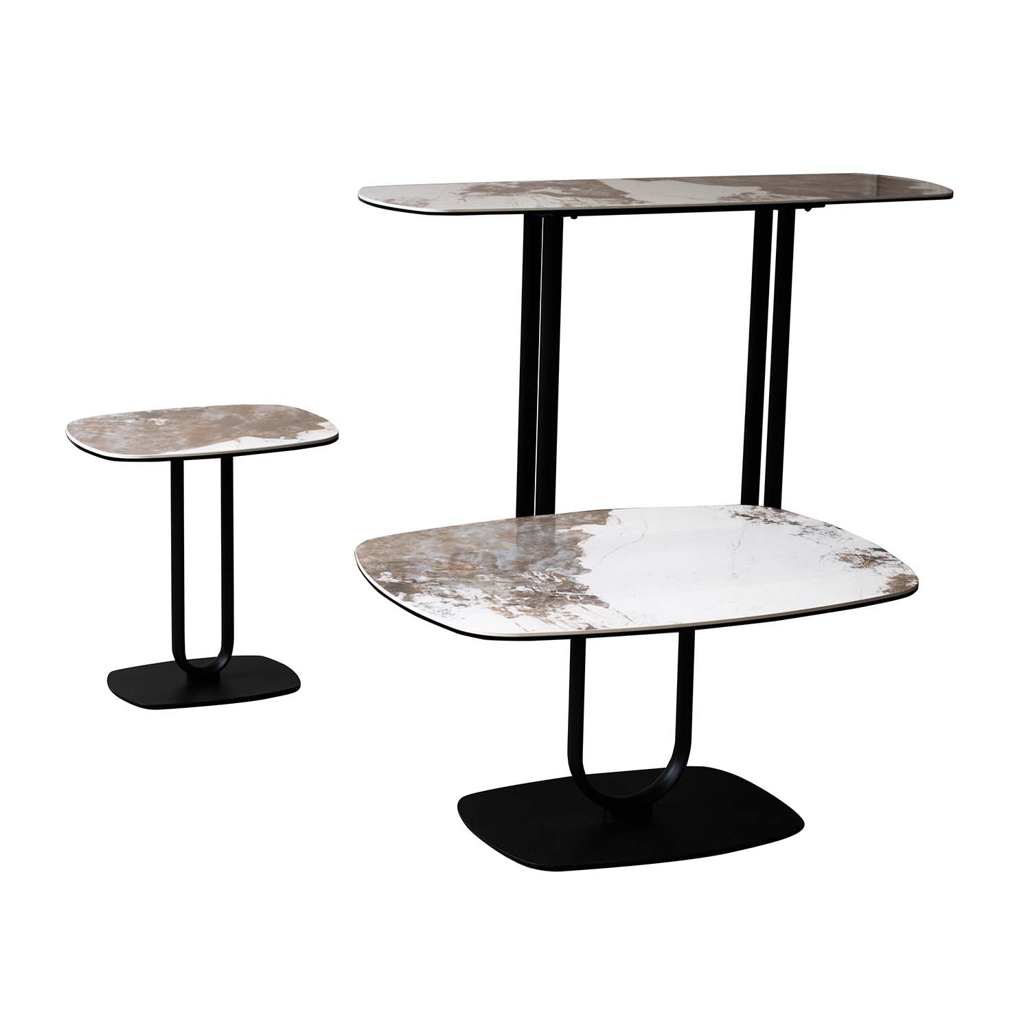 Elevate your interior with this elegant console table featuring a premium Panlola 6mm ceramic + 6mm glass tabletop, beautifully finished with a white and grey marble-effect surface. Supported by a sleek black powder-coated metal frame—perfect for hallways, entryways, or behind-sofa styling. Its modern form and durable materials make it a striking and functional addition to any contemporary living space. Assembly required.