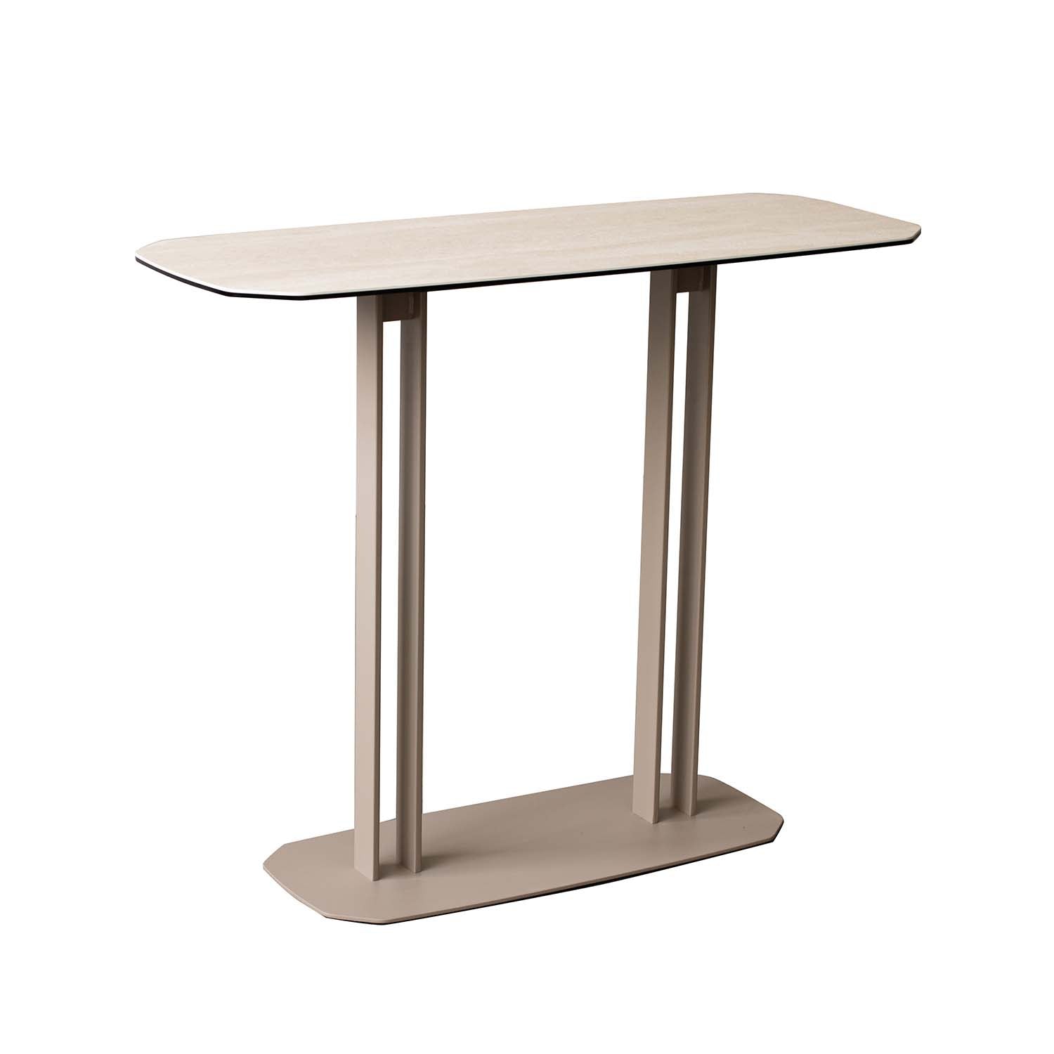 Travertine Ceramic Glass Top Cappuccino Metal Frame Console Table