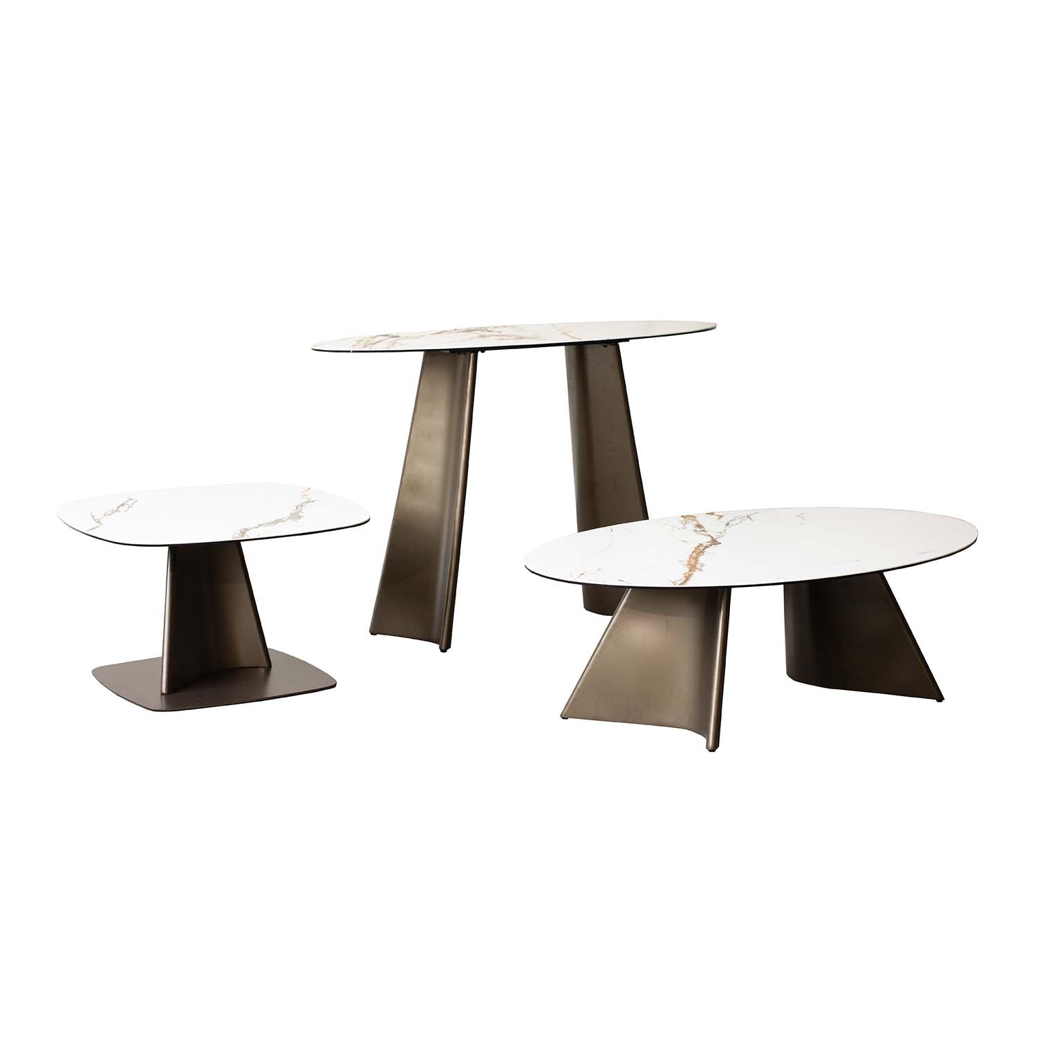 Elevate your interior with this elegant side table featuring a 3mm ceramic + 6mm glass top in a smooth vintage white marble finish. The rounded square shape (71cm x 68cm) offers a modern aesthetic, while the solid brown powder-coated metal base adds strength and balance. With a height of 42cm, it's the perfect surface for placing books, drinks, or decorative items beside sofas or armchairs. Ideal for stylish and contemporary home or office spaces. Assembly required.