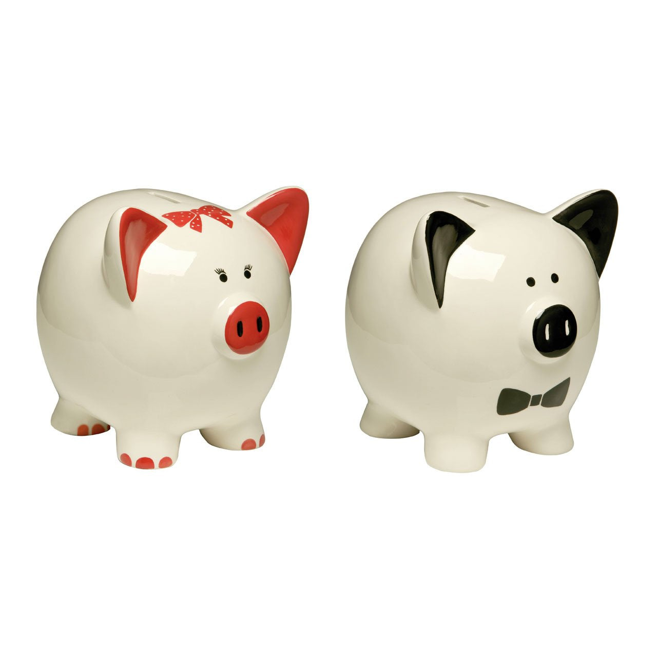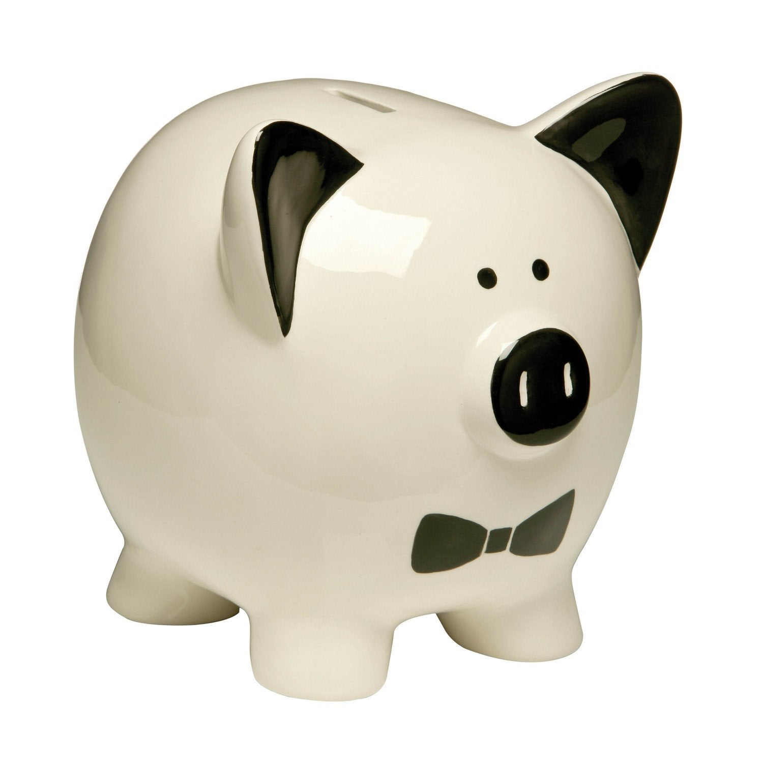 Store your loose change in this charming piggy bank, and come to the end of the year you'll be delighted with the money you've saved. Made with chic ceramic, the cream and chic black piggy are durable for everyday use, so there is no excuse for not dropping a penny in each day. A stopper underneath allows you easy access to your money, so no need to get the hammer out. Ideal for your own home or as a wonderful gift, the stylish and charming piggy bank will look fantastic sitting in any room.
