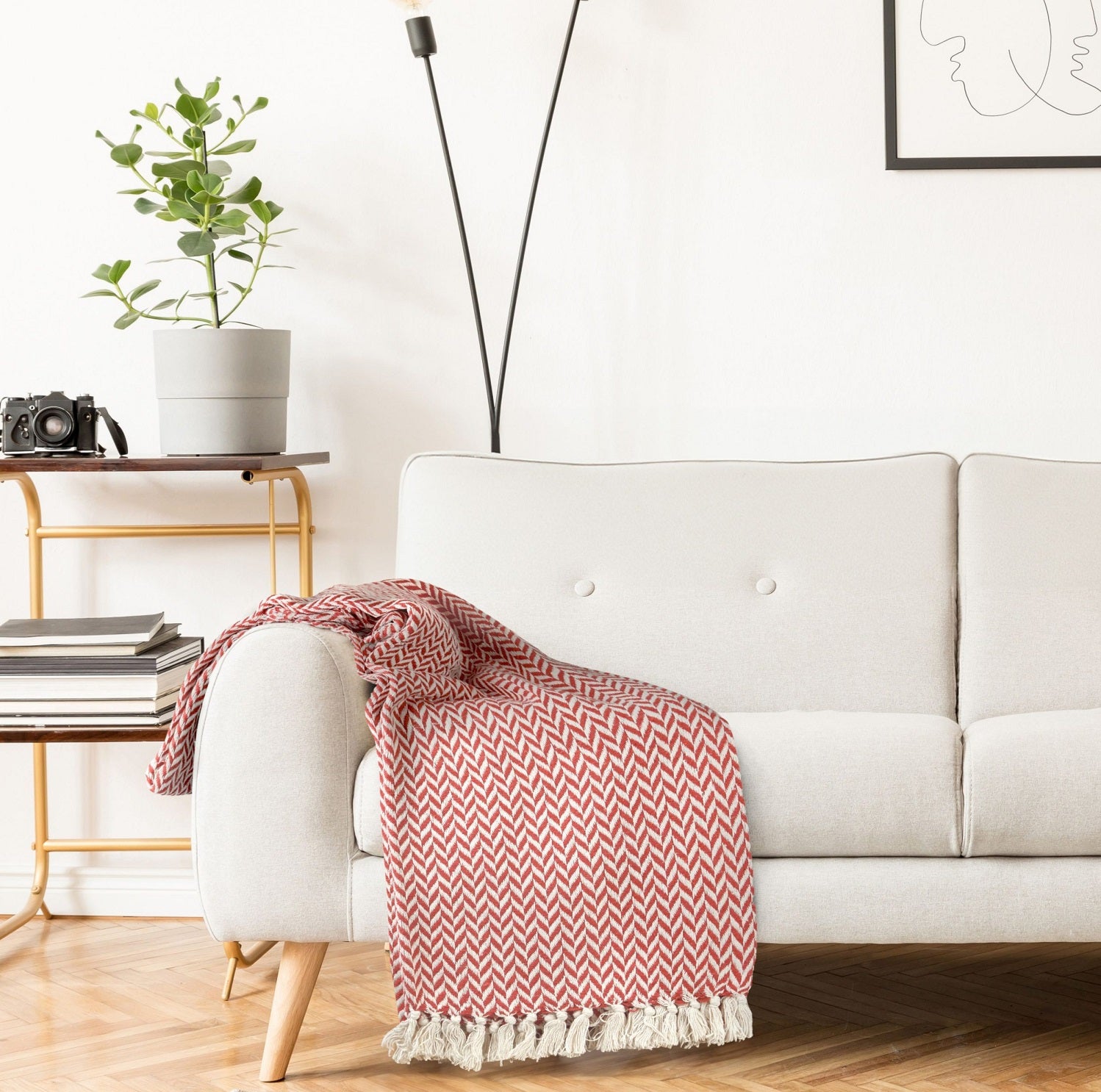 This luxury 100% cotton fringed tassel throw gives a decorative style to your home or can be used as furniture cover or can also be used as decorative throws on bed. It has herringbone design on it. Material is 100% Cotton (Made from recycled material) and it is machine washable.