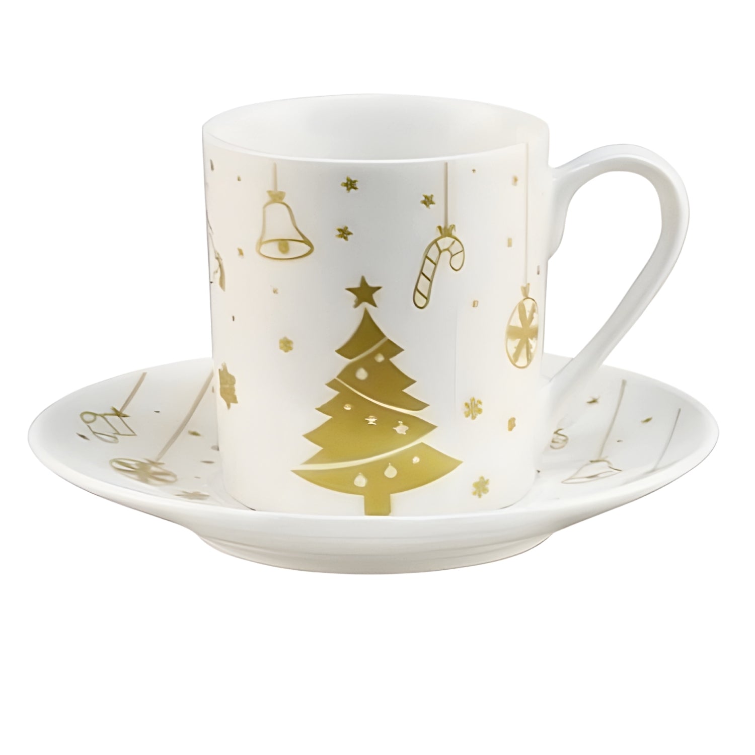 Celebrate the holidays in style with this New China Cup & Saucer Set. Crafted from premium new china, each piece features an elegant golden Christmas tree design. Perfect for serving small portions of coffee or tea during festive gatherings, this set combines charm and practicality.