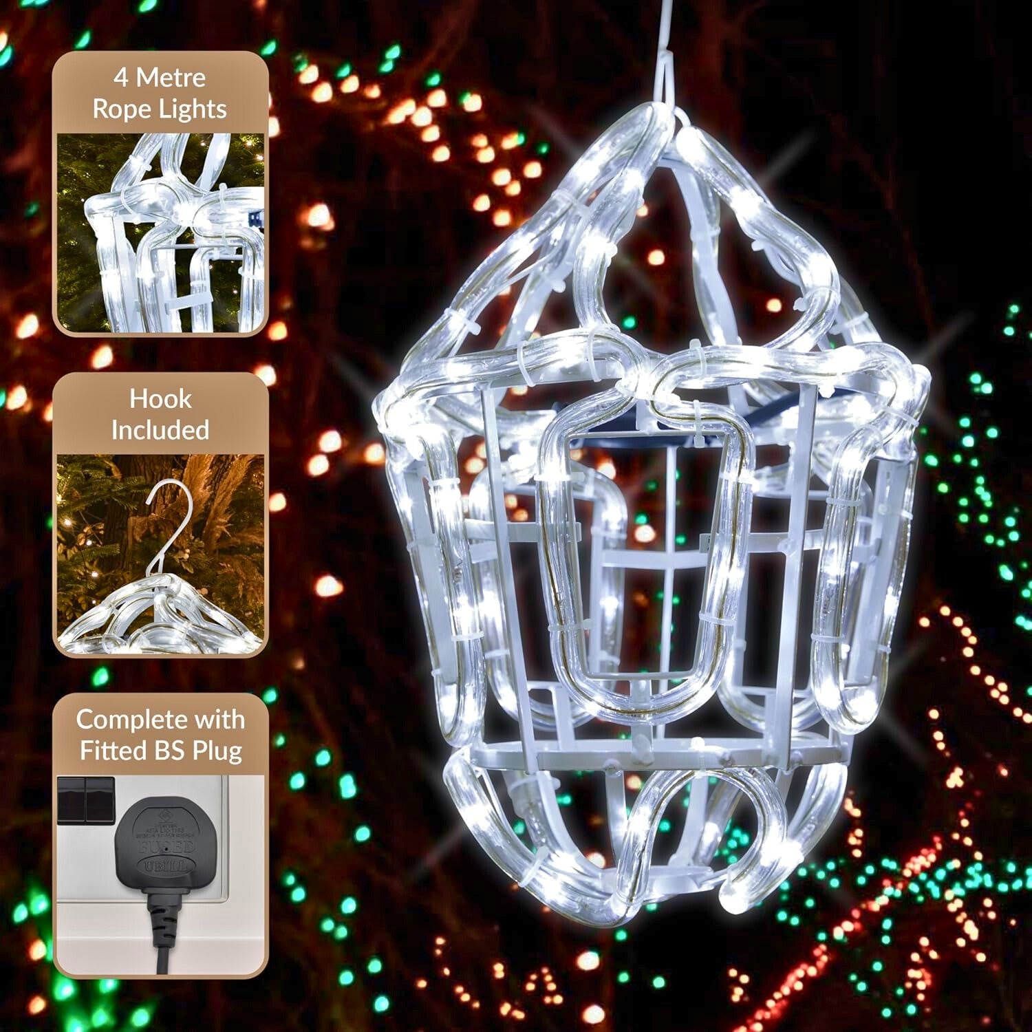 This light will look great hanging above a doorway and provides a lovely warm glow, perfect for those long dark winter nights. Add a bit of festive feeling to your home with this wonderful lantern rope light. A generous 3m lead cable gives you great flexibility as to where you can place the item. Impress your friends and family with this great christmas decoration!
