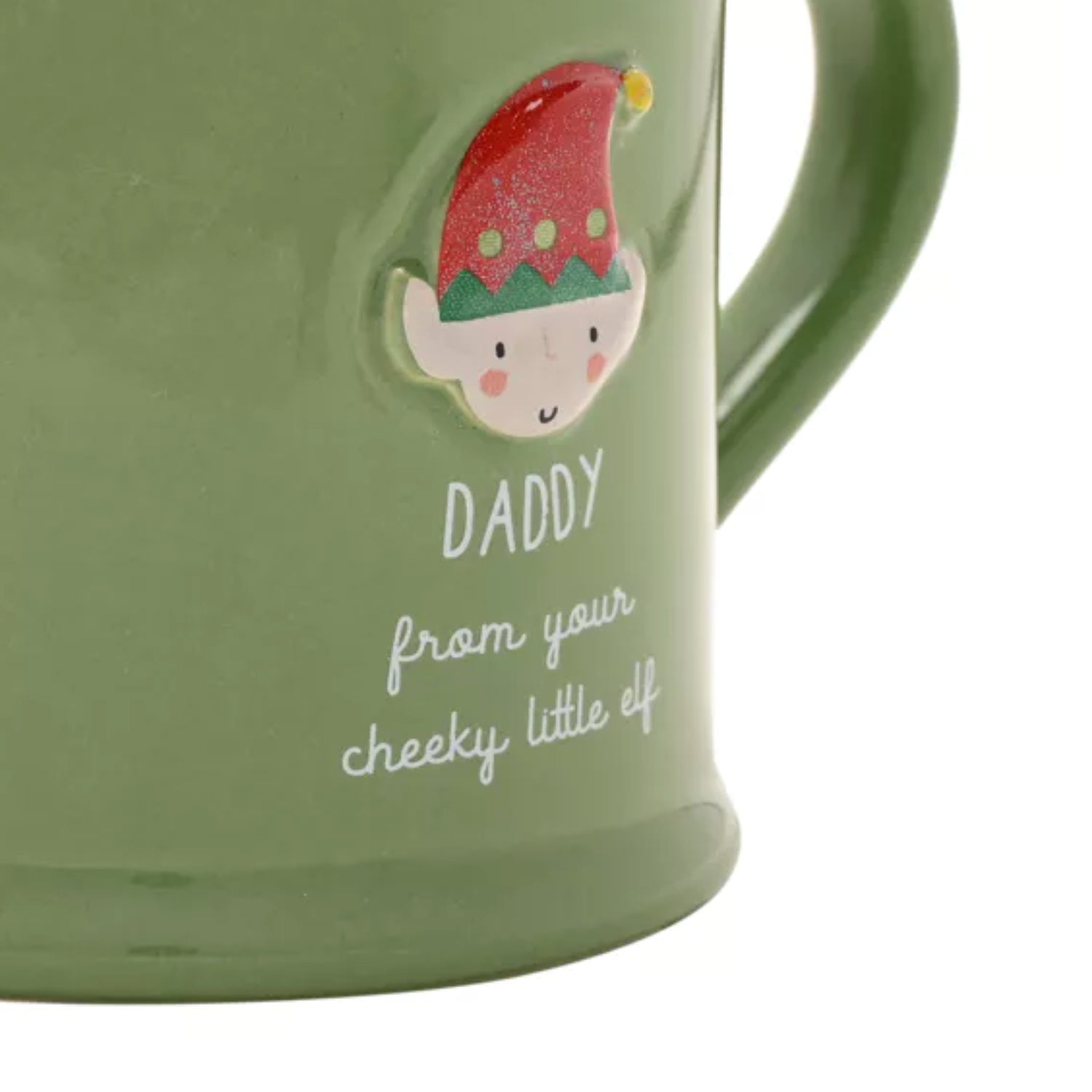 Christmas Mug Set Mummy Daddy Ceramic 300ml Embossed Elf and Pudding Gift Cups