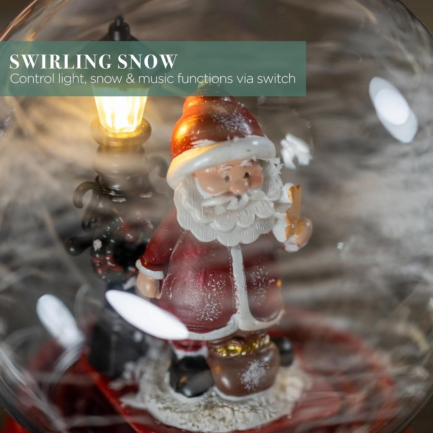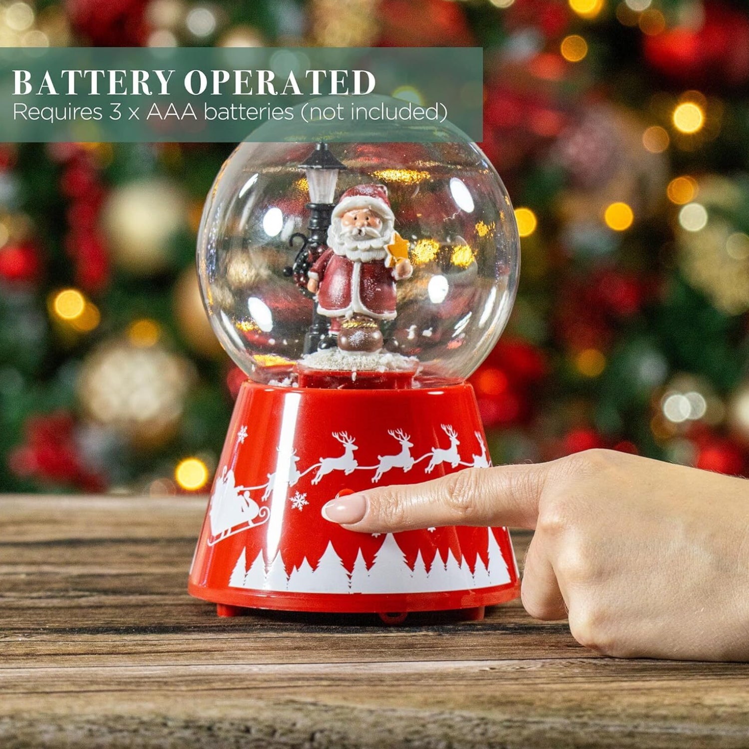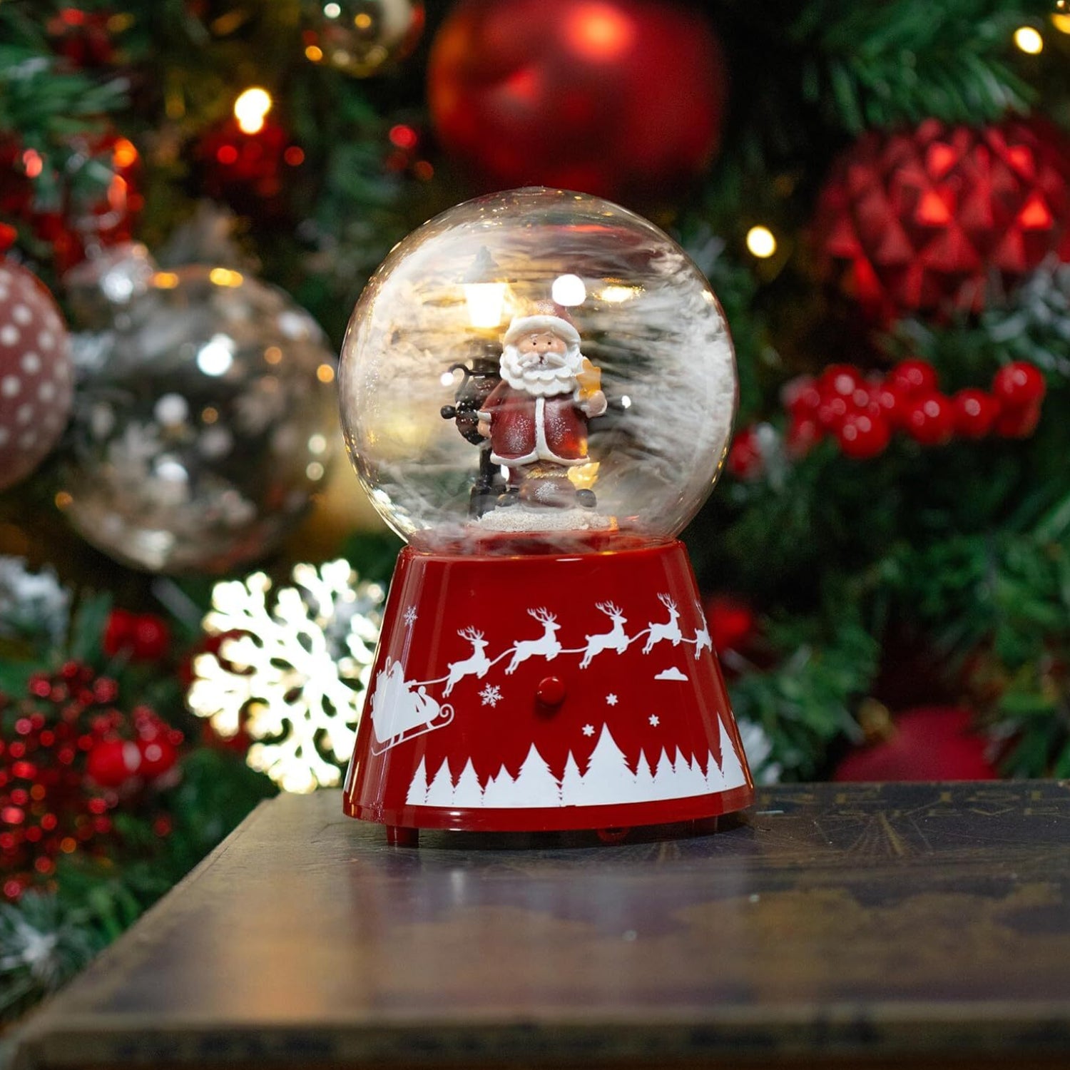 - This festive Santa snow globe is compact yet eye-catching, making it an ideal addition to mantels, shelves, or tabletops during the holiday season.