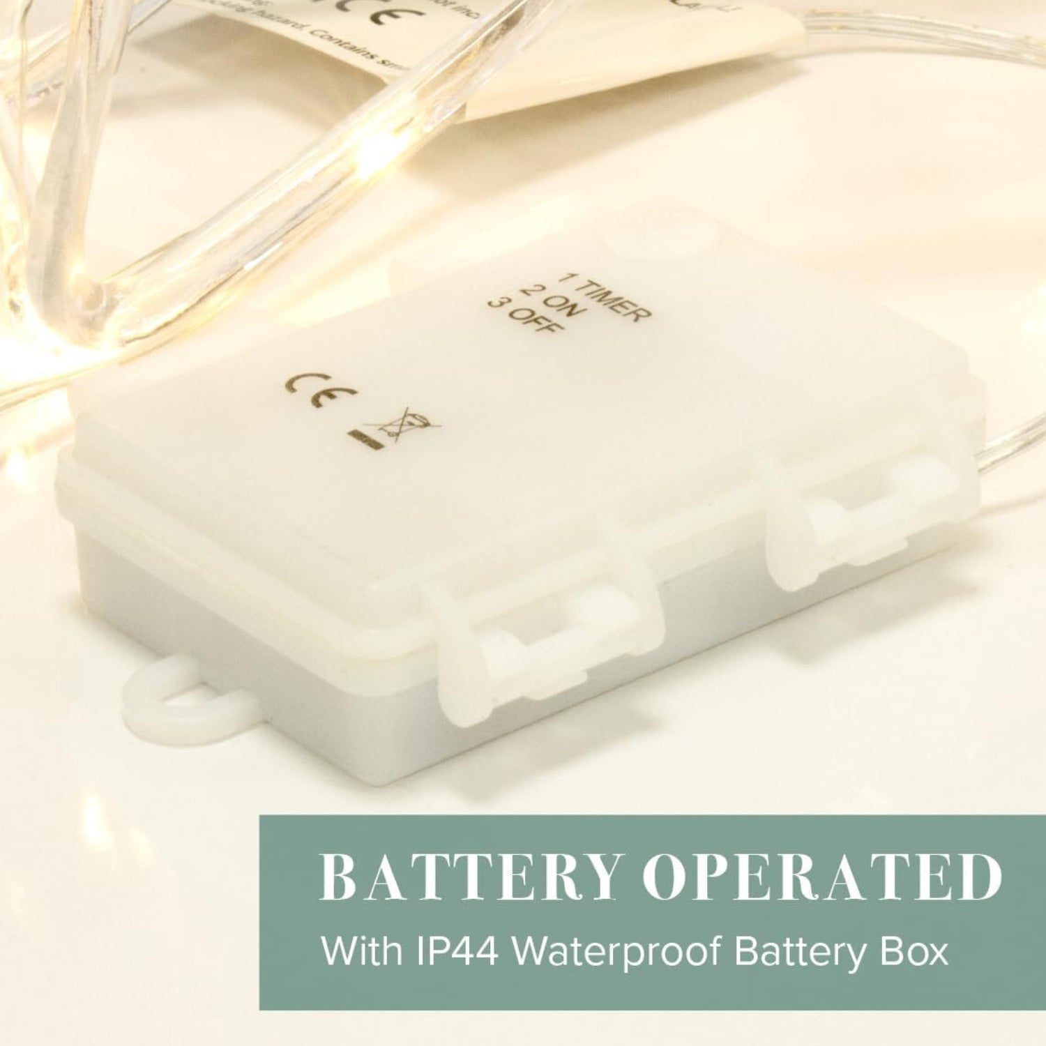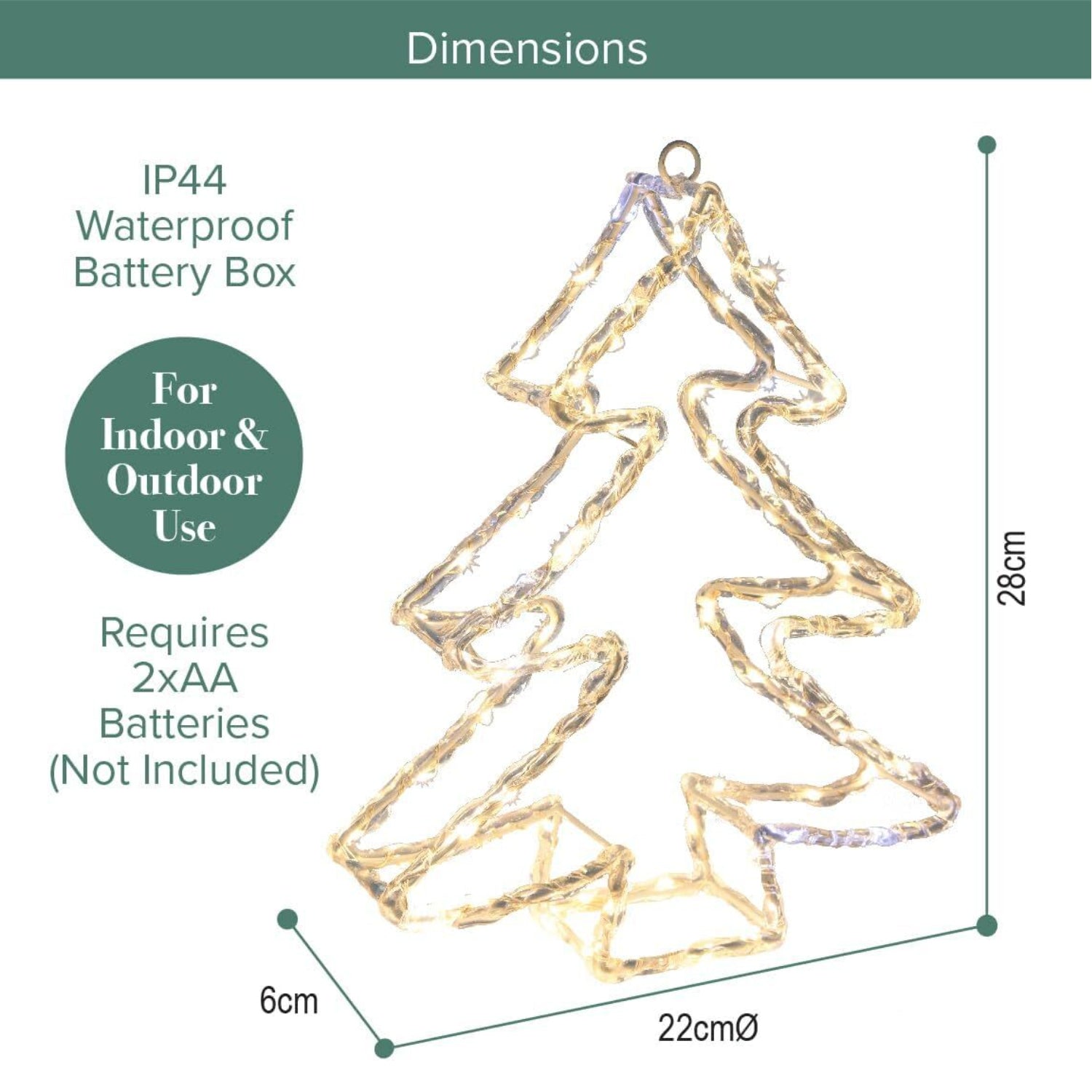 - Being IP44 waterproof certified, this tree is suitable for use both indoors and outdoors. Its battery box is also IP44 certified, ensuring its safe use outside. Requires 3x AA batteries (not included)