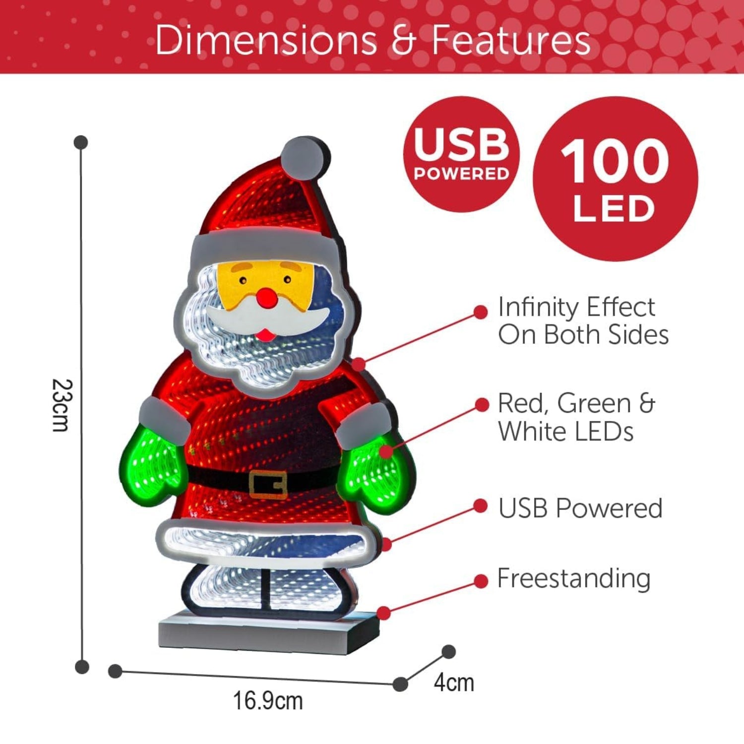 Christmas USB Operated Warm White Santa LED Infinity Mirror Light