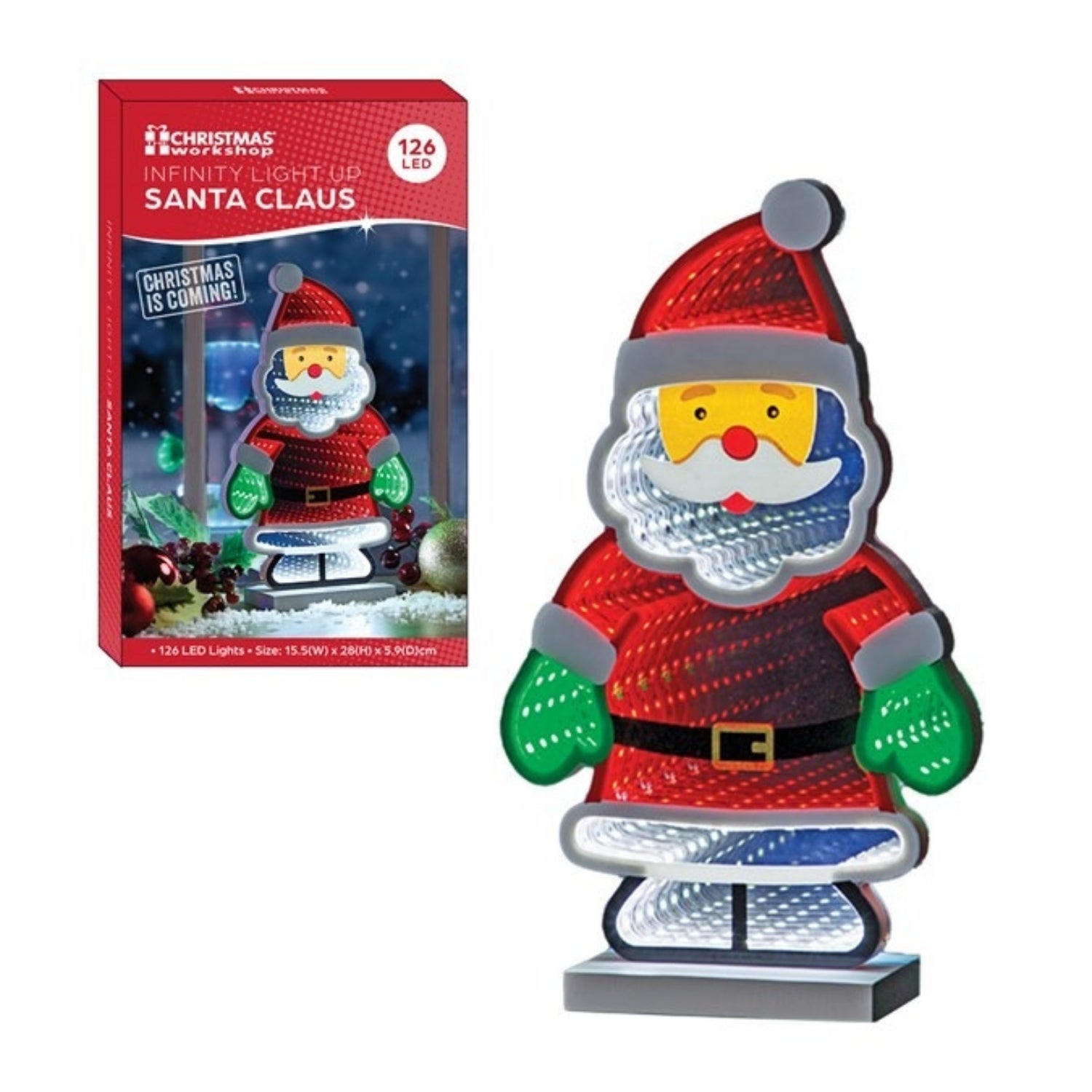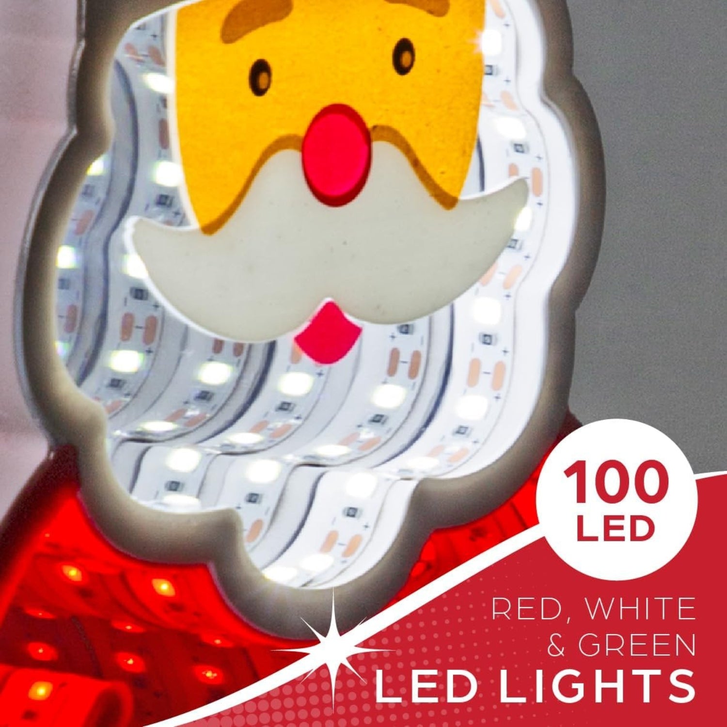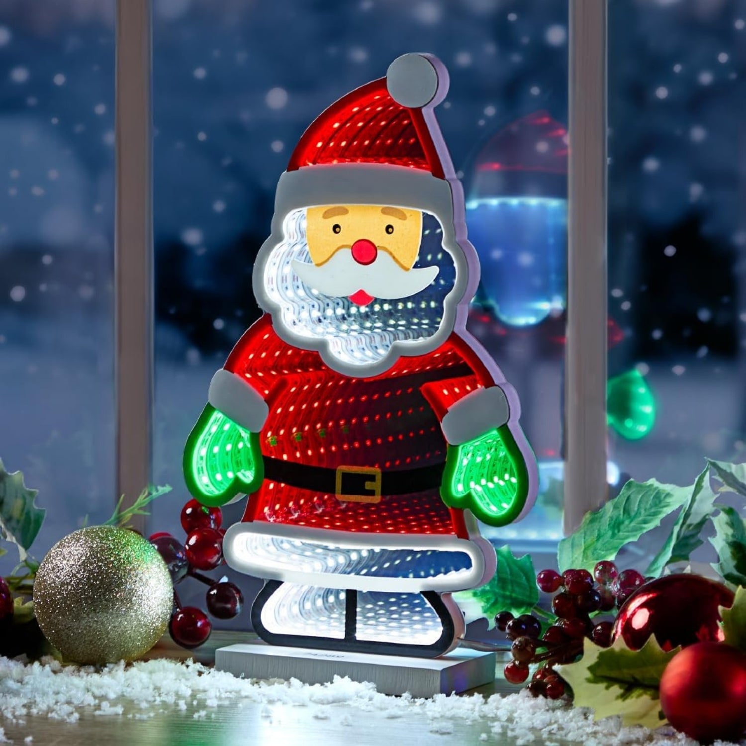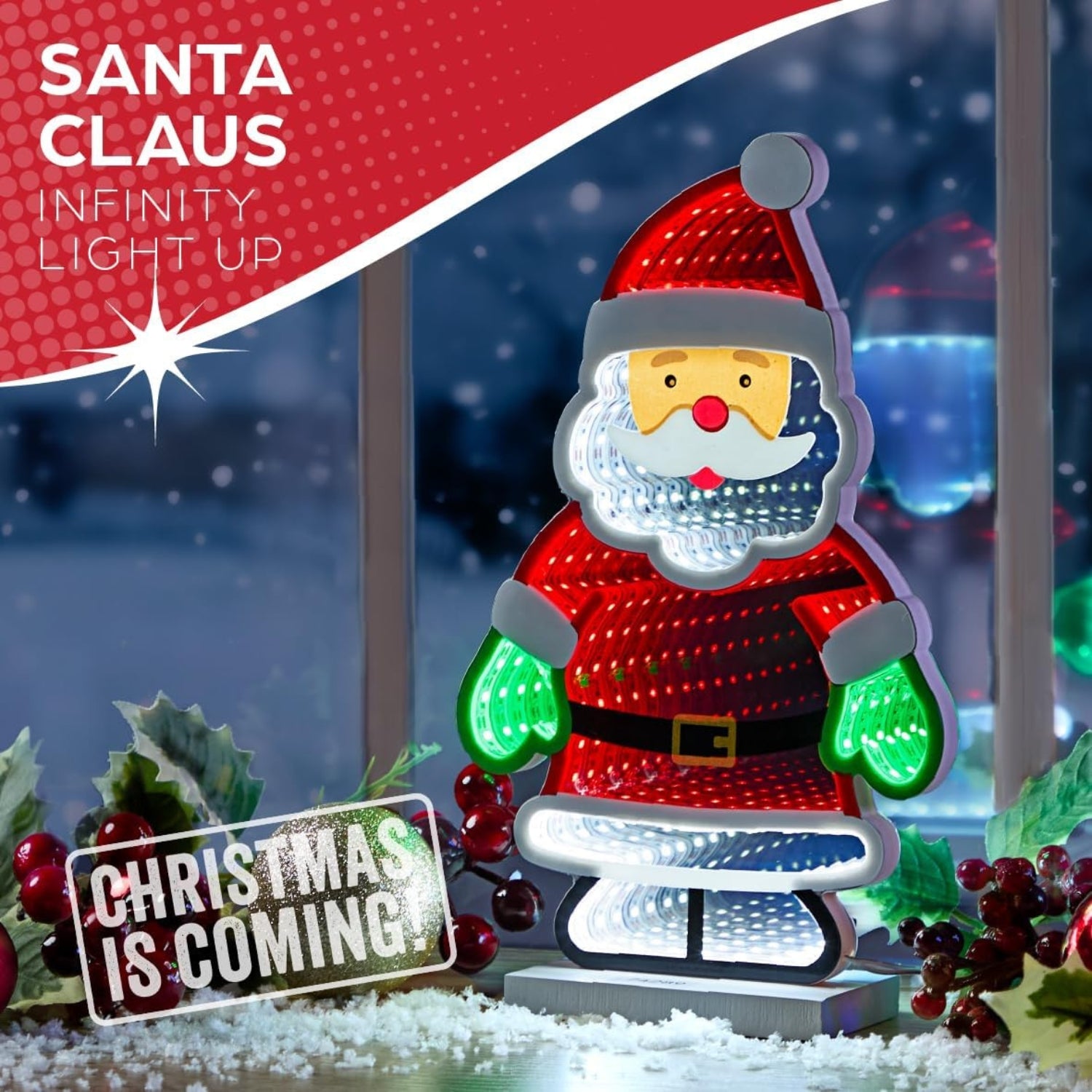 - Santa silhouette with infinity mirror LED lighting for a captivating 3D effect.
