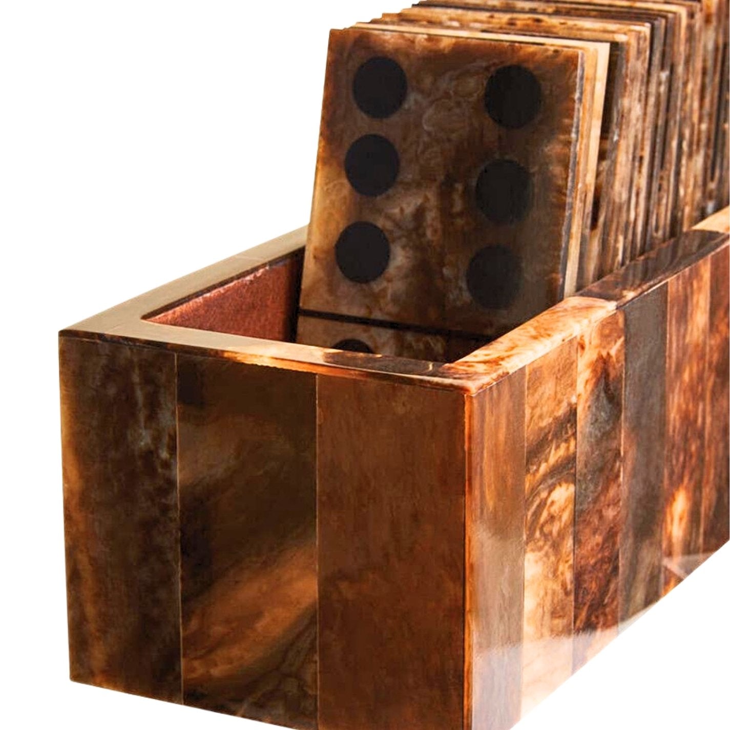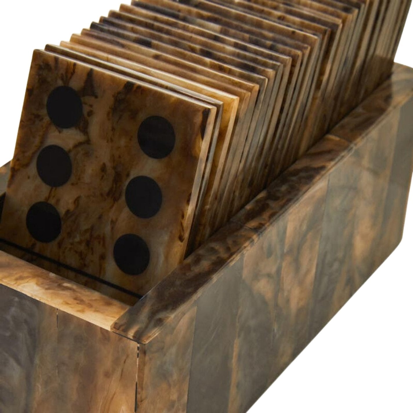 Handcrafted from premium resin, the Churchill domino set combines timeless playfulness with modern design. The brown and black two-tone finish adds sleek contrast, while each piece is finely crafted to serve as both a functional game and a decorative statement on coffee tables, shelves, or sideboards.