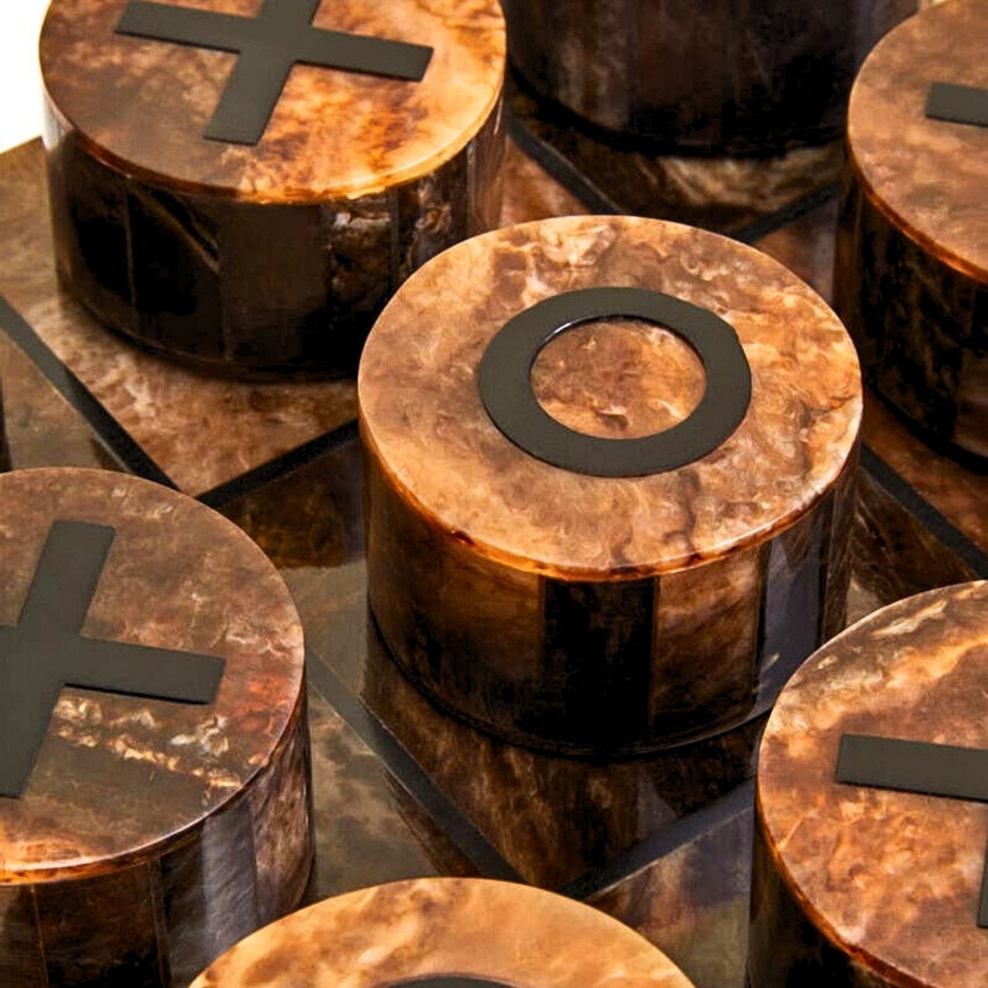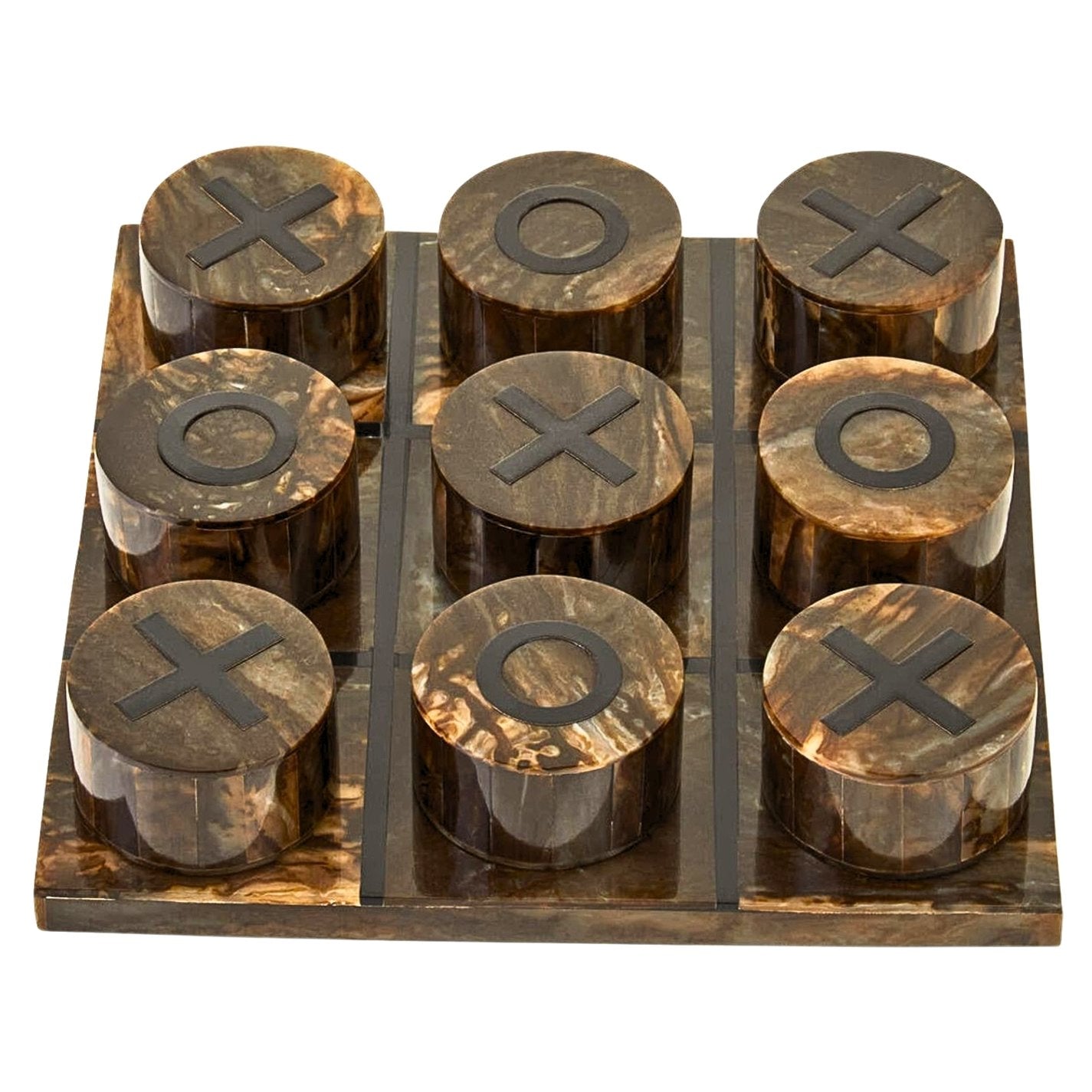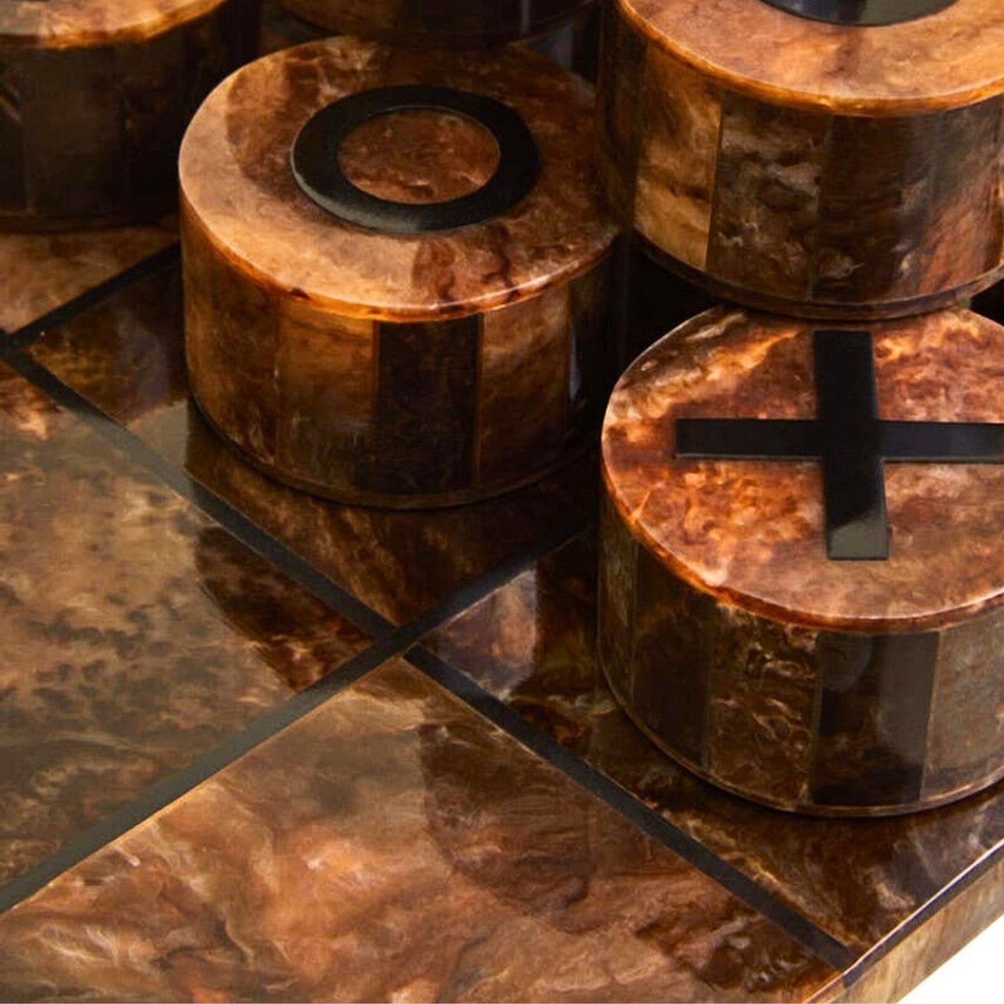 Handcrafted from premium resin, this Churchill noughts and crosses game combines a sleek brown base with contemporary black playing pieces, serving as both a playful pastime and a stylish accent piece.