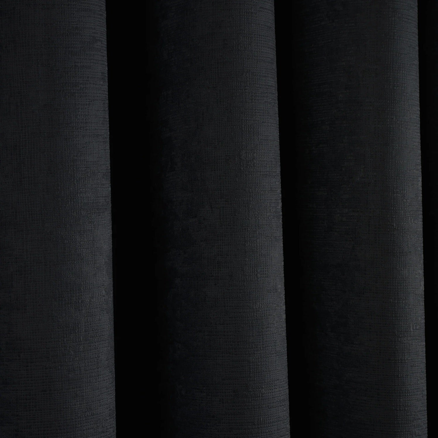 Classic Vogue Textured Dim Out Thermal Eyelet Ring Top Curtains 90" x 108" - Black