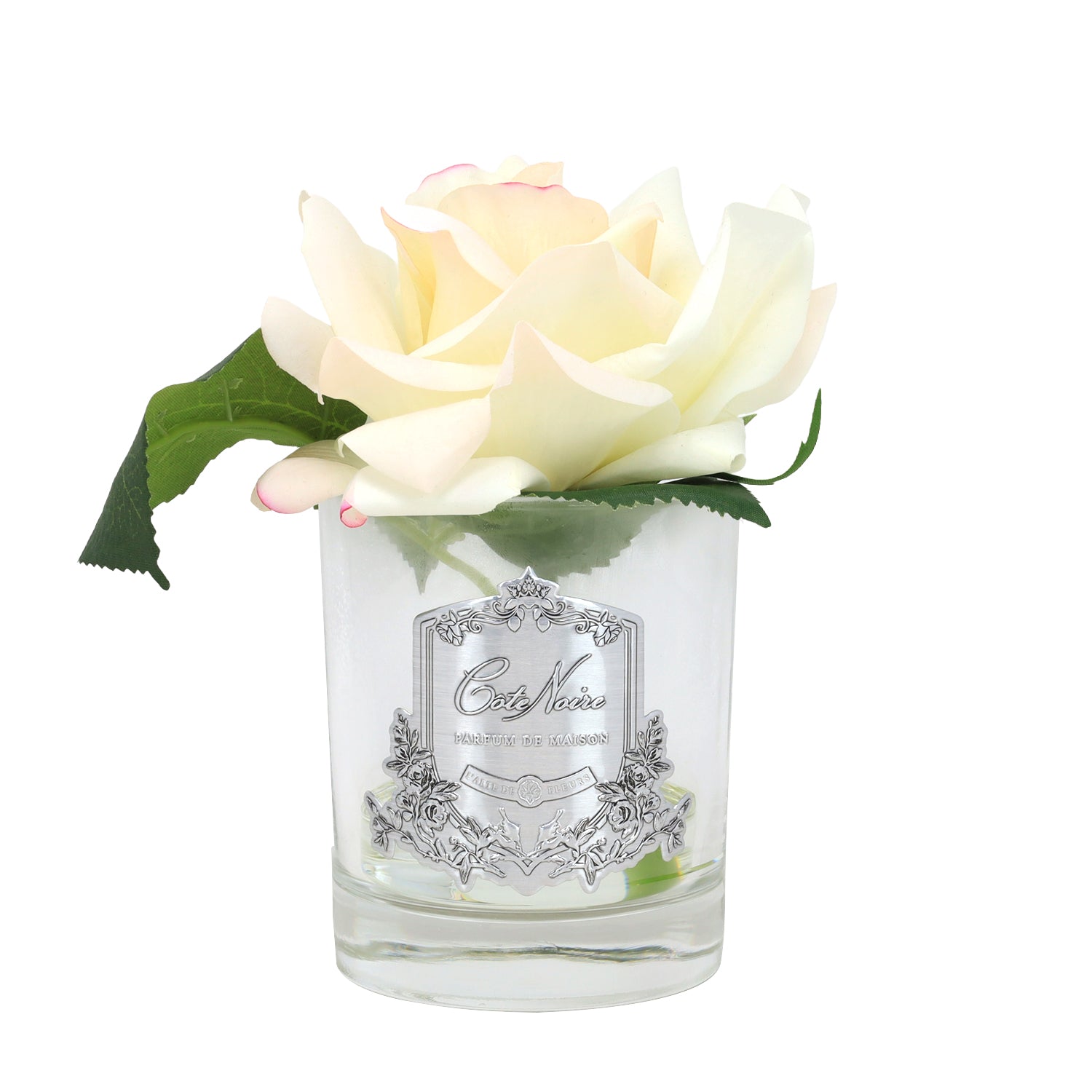Each life-like perfumed French Rose has been skilfully hand crafted and is set in gel giving it the appearance of water. Each petal has a special natural coating to give them a true to life touch & appearance.