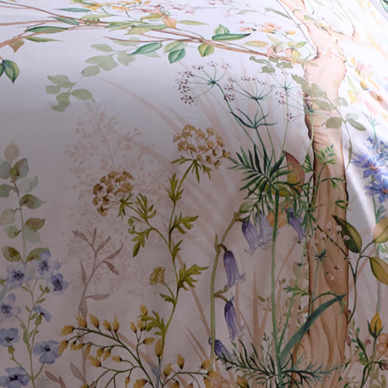Country Garden Foliage Duvet Cover Set 100% Cotton, King, Natural