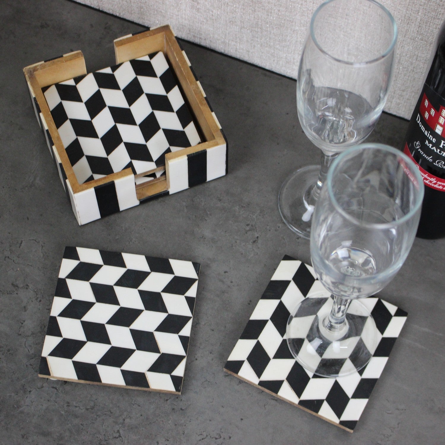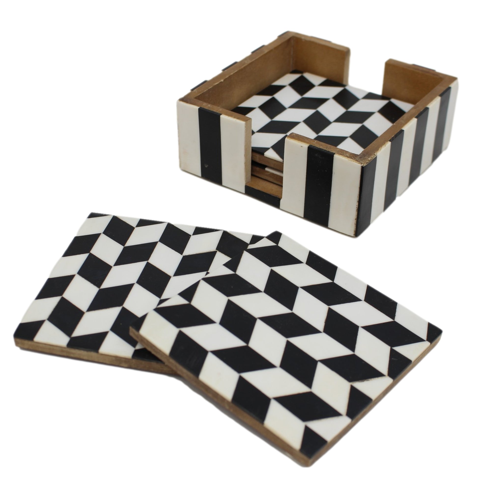Decorative Design Set of 4 Wooden Coasters Tableware Dining