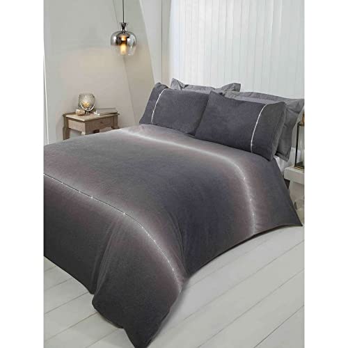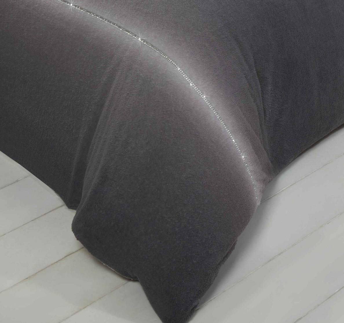 Diamante Charcoal Grey Teddy Fleece Duvet Cover Set, Single