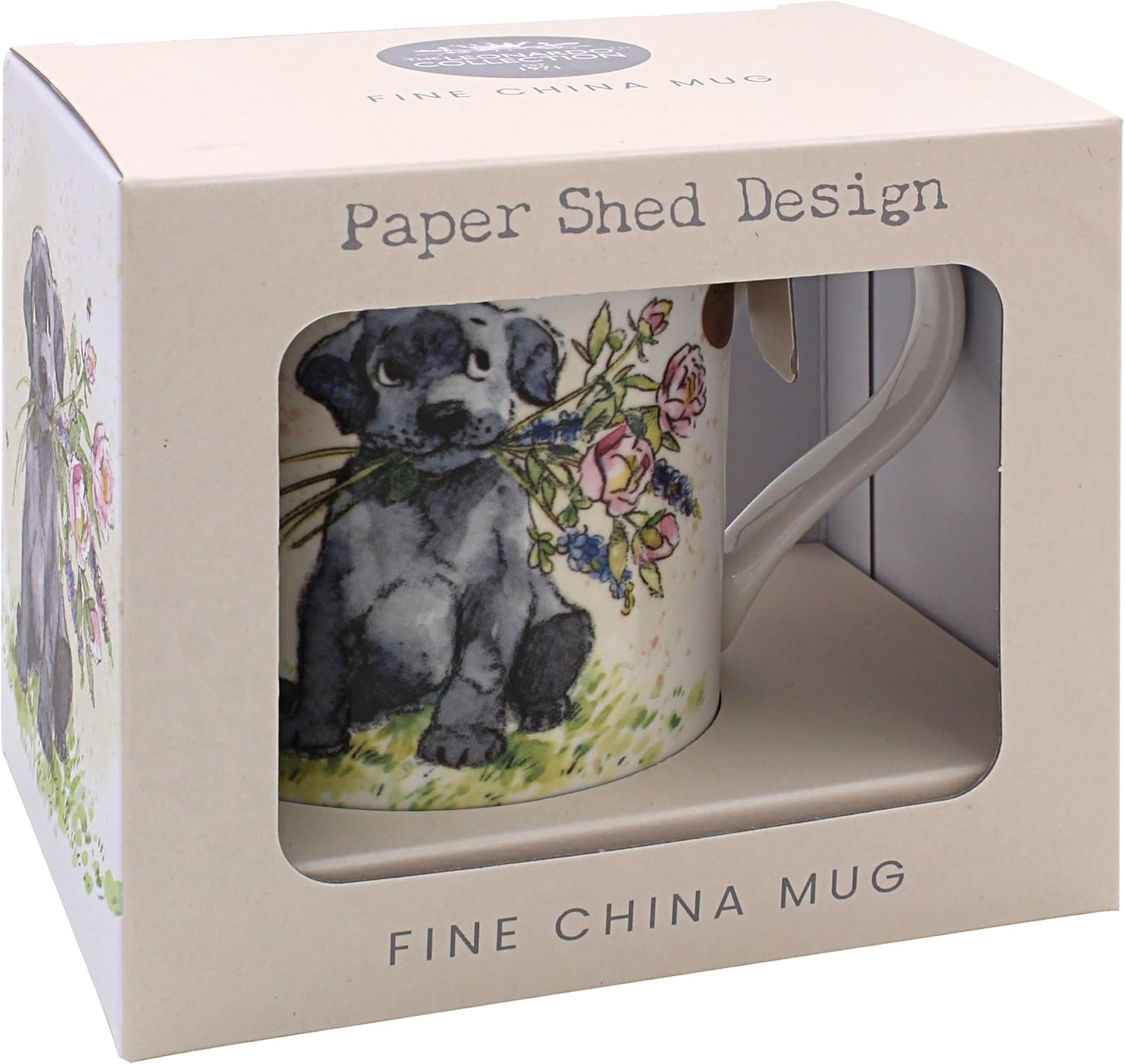 Dog w/ Flowers Fine China Ceramic Mug
