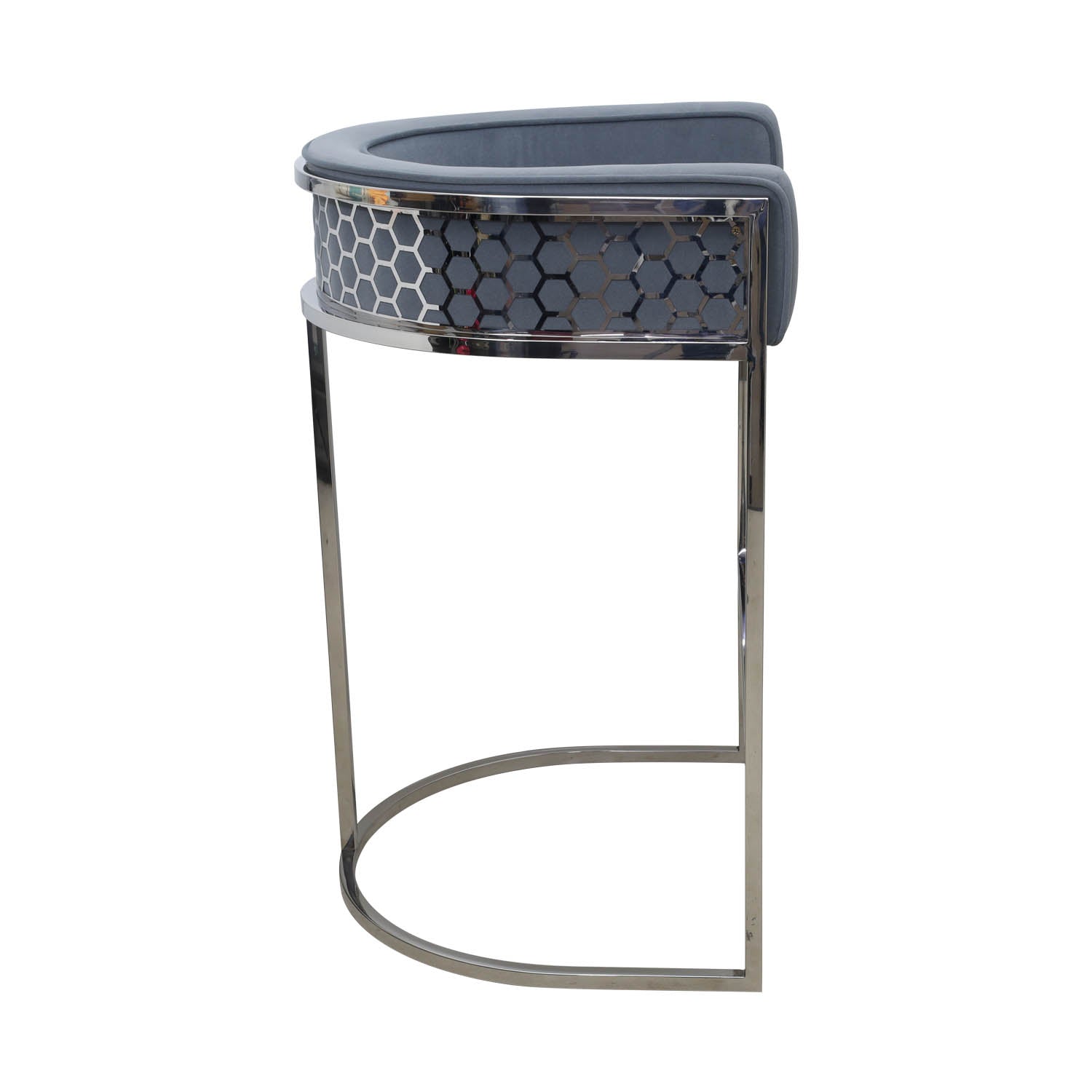 The counter stool in silver dove grey is a stylish and contemporary seating option for your kitchen or bar area. With its sleek silver frame and plush dove grey upholstery, it adds a touch of elegance to any space. The stool features a comfortable padded seat and a supportive backrest, providing both style and comfort. Its compact size makes it ideal for smaller spaces, while its sturdy construction ensures durability. Upgrade your seating with this sophisticated counter stool.
