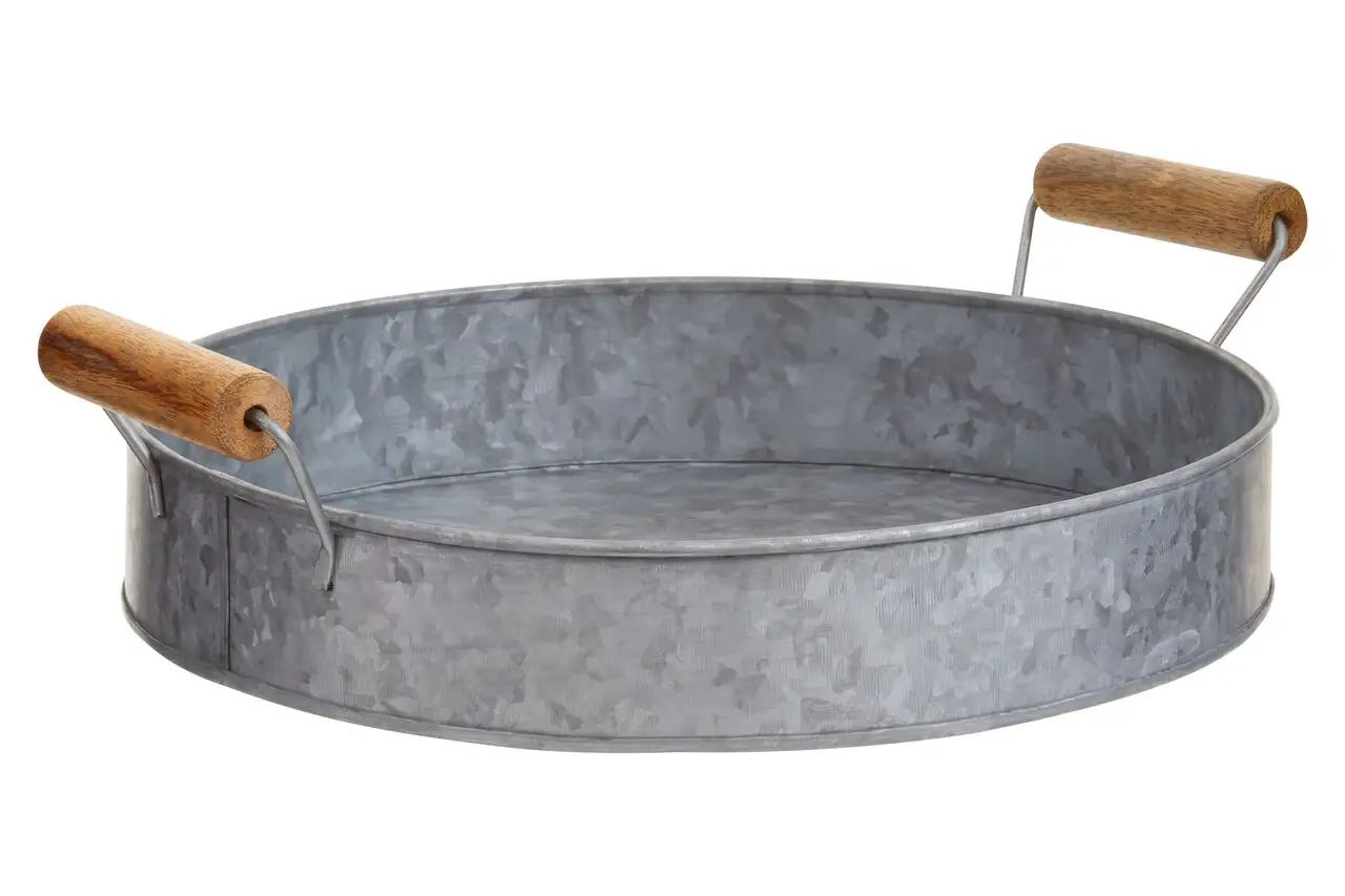 Drumley 35cm Round Galvanized Steel Tray With Wooden Handles