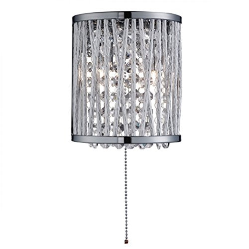 This Elise 2 Light Wall Bracket with Crystal Button Drops and Aluminium Tubes Trim makes a bold statement in any room of your home. The semi-circular chrome finish fitting has aluminium tubes in a criss-cross and straight-lined pattern around the outside. And the centre of the fitting is adorned with clear crystal button drops, which sparkle beautifully when the lights are turned on. Product dimensions: Total height: 170mm, Width/Diameter: 150mm Product dimensions: 170 x 170 mm.