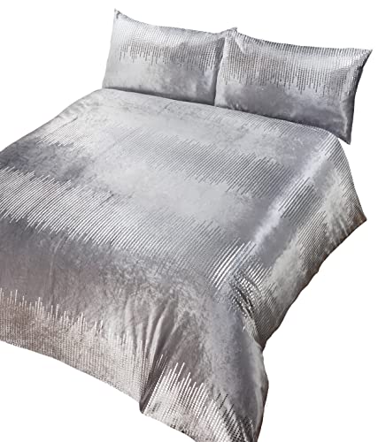 Embellished Velvet Duvet Cover Set Tiffany Silver Grey Double