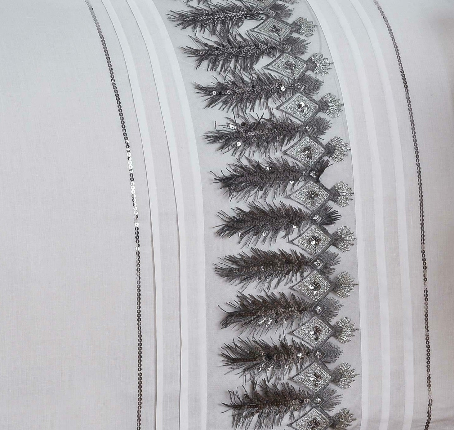 Embroidered Feathers Duvet Cover Set White Grey Super King