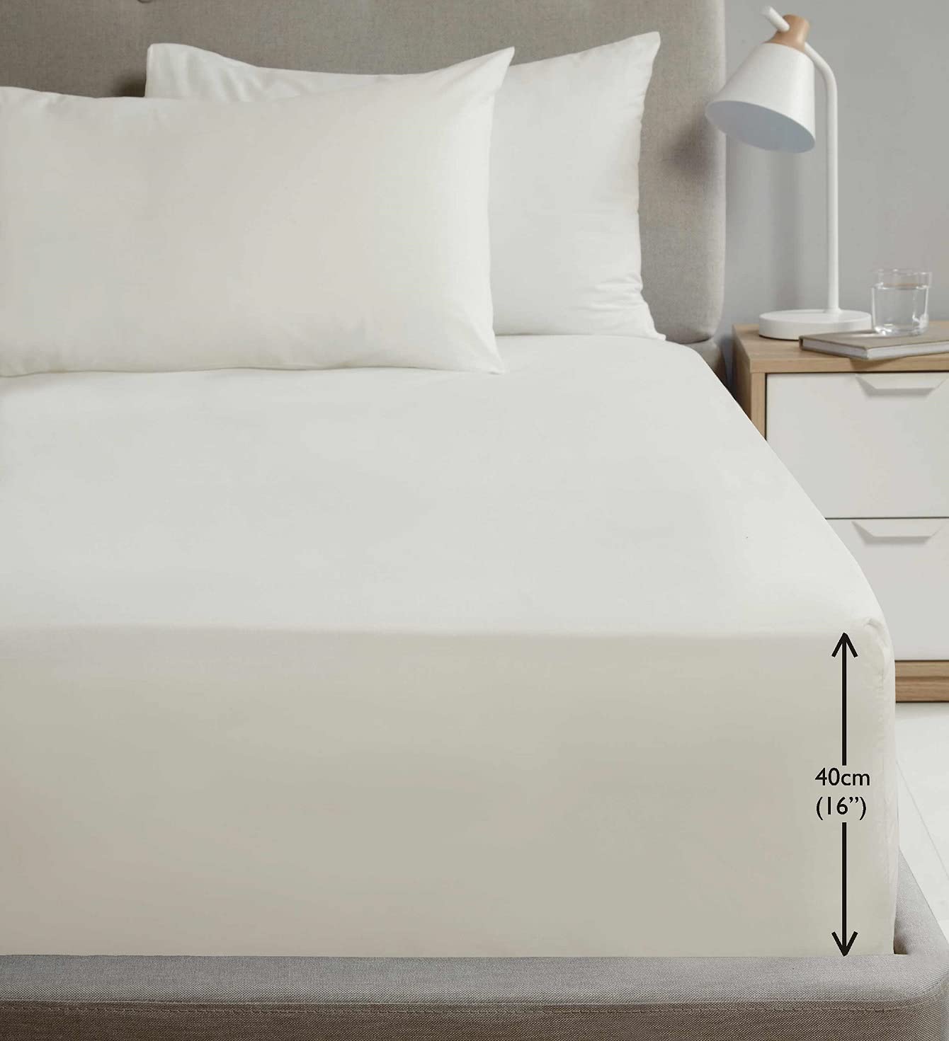 Extra Deep Percale Fitted Sheet 40cm Plain King Ivory Cream