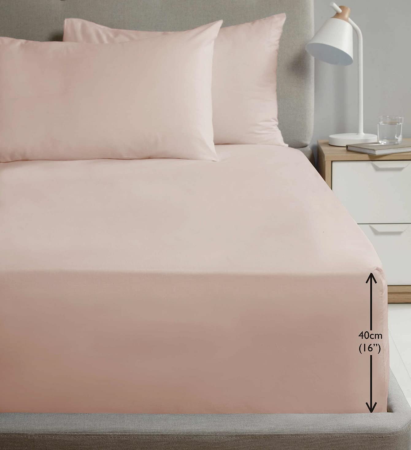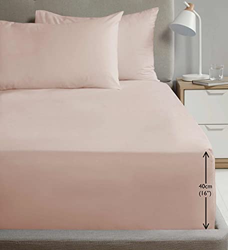 Extra Deep Percale Fitted Sheet 40cm Plain Super King Blush Pink