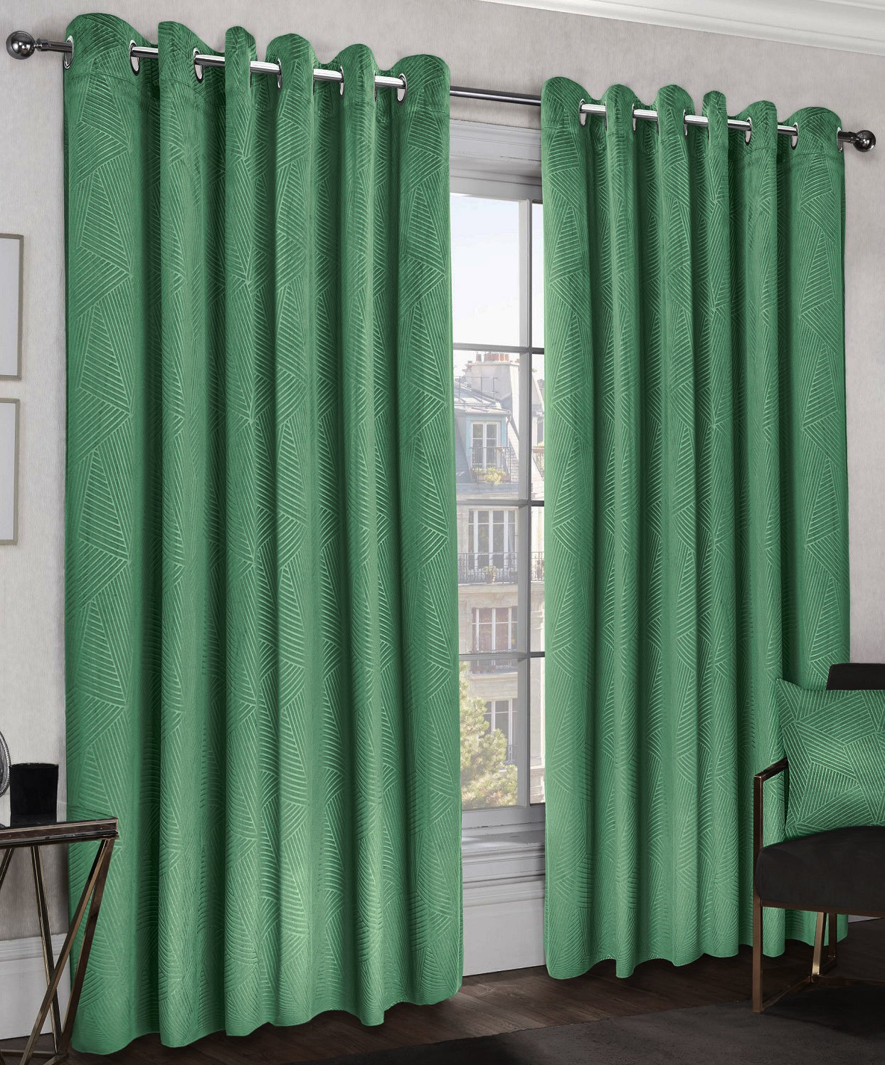 This luxury, velvet thermal blackout curtains has geometric design on it. These curtains has multi layered weave for improved thermal properties, keeping heat in during the winter and reflecting it in the summer. The unique process used to create this fabric which gives it a matt velvet finish and a naturally soft drape. Material is 100% Polyester. It is machine washable.