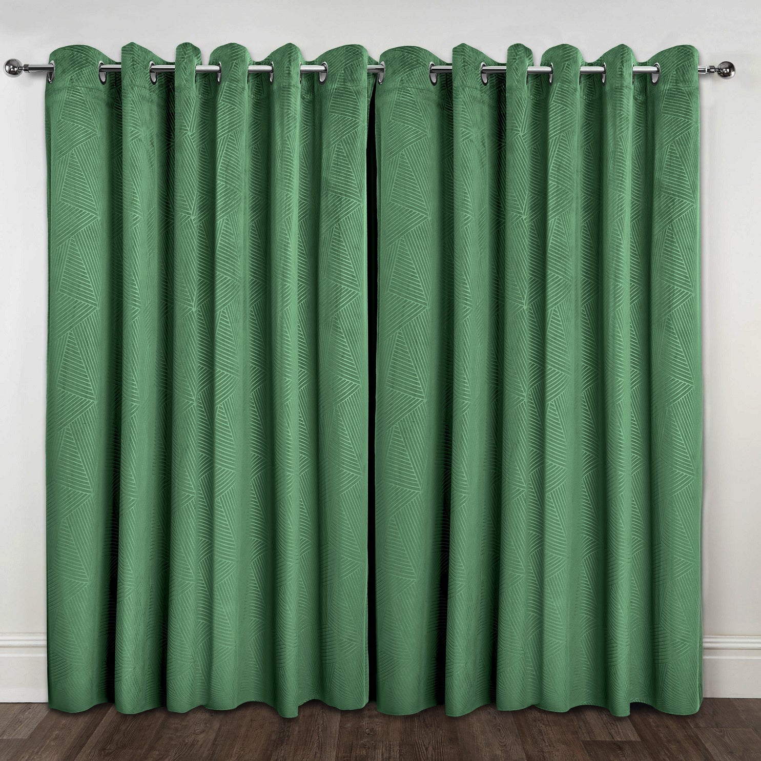Geometric Velvet Thermal Blackout Curtains Eyelet Ring Top 66x90" Emerald Green