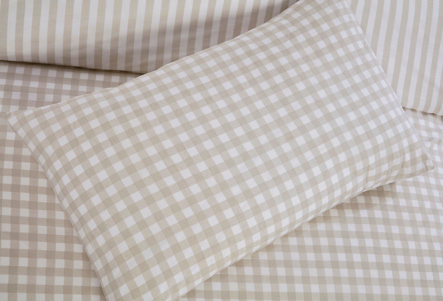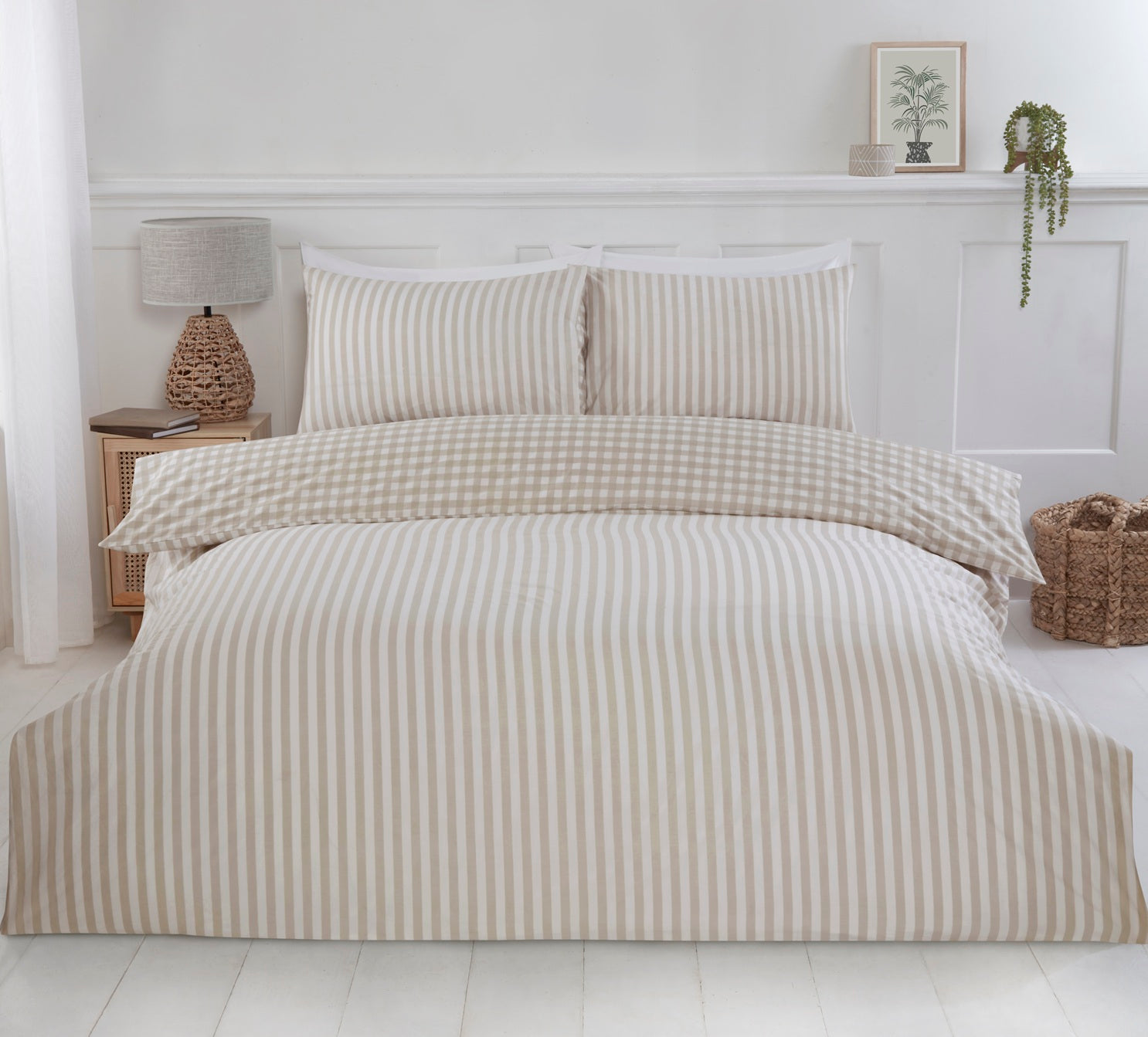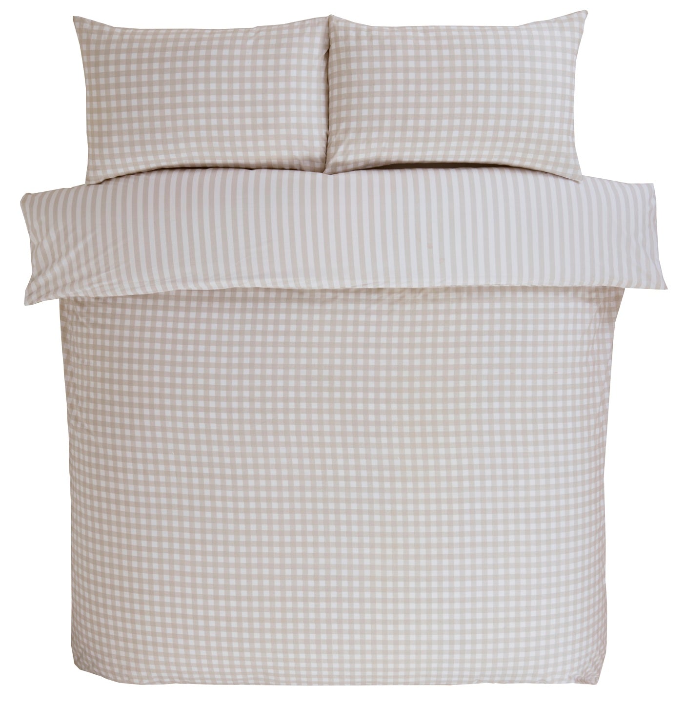Gingham Check and Striped Duvet Cover Set, King, Natural
