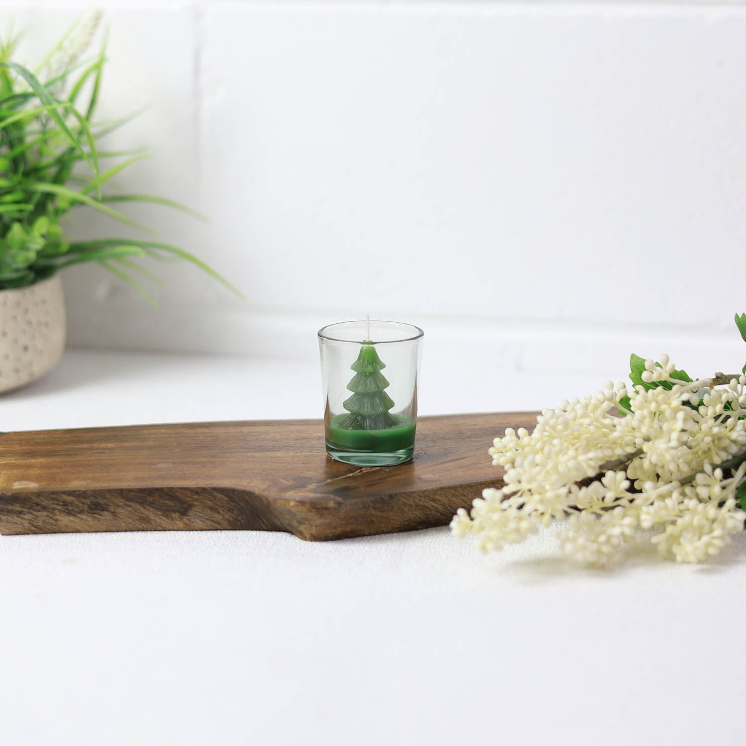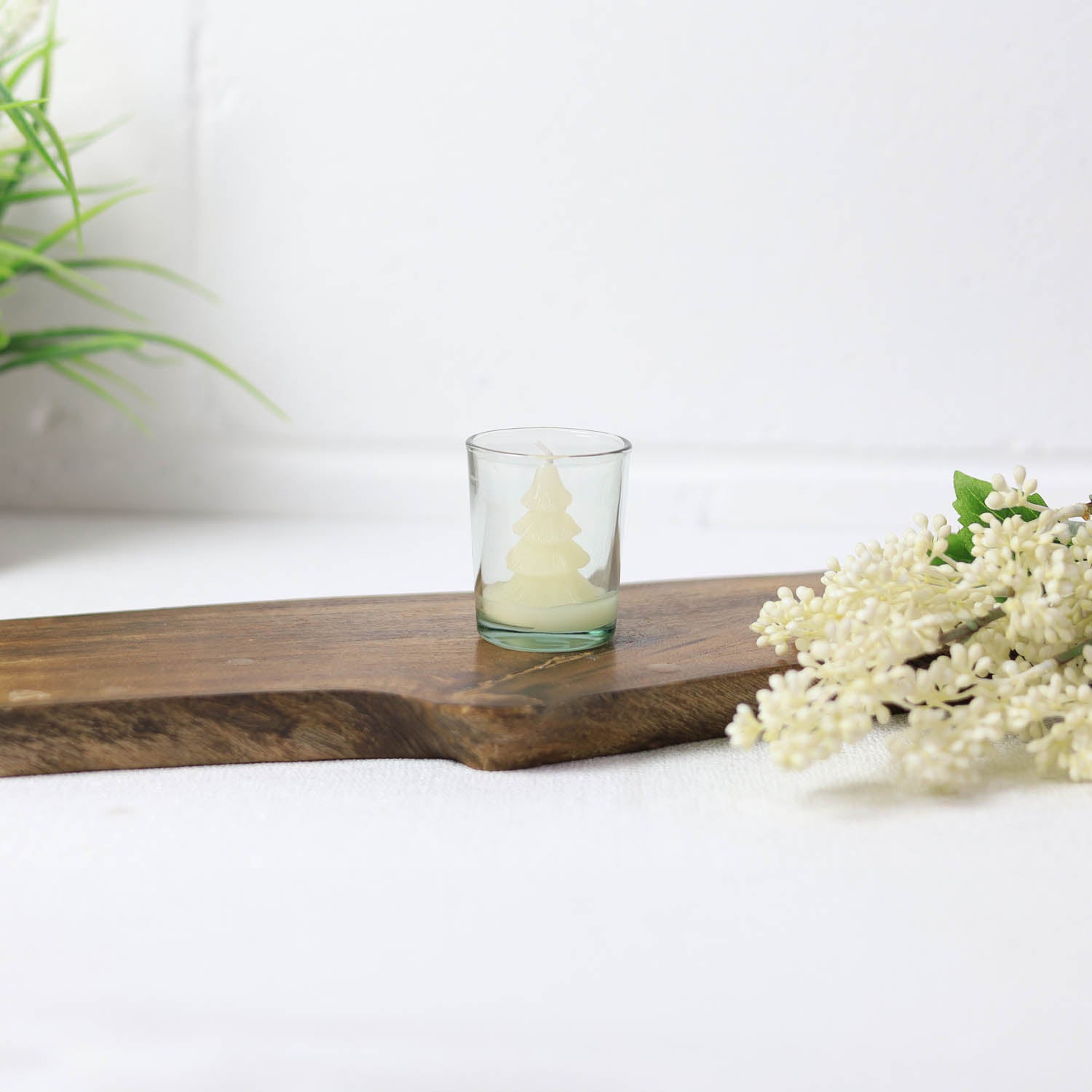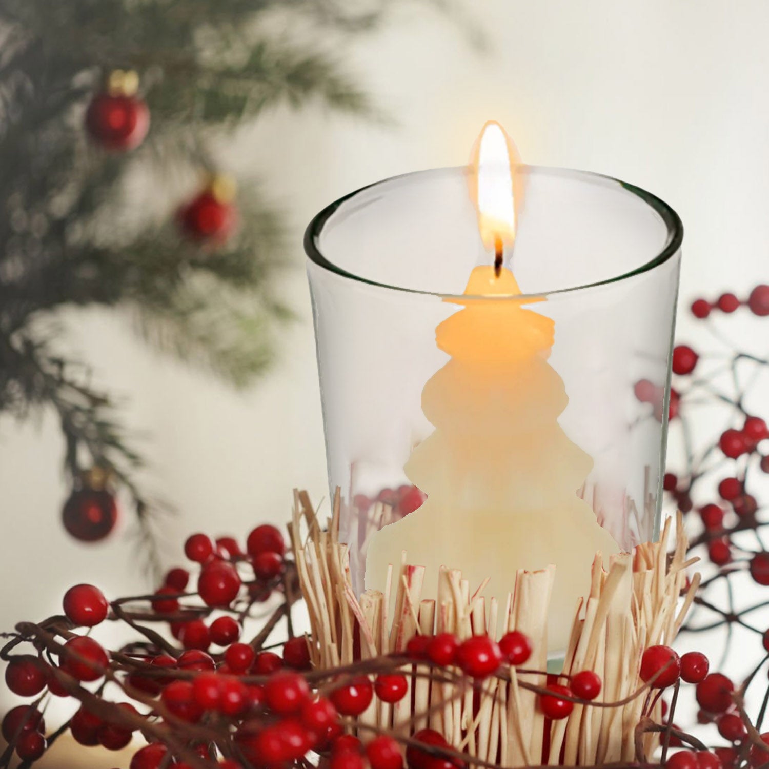 - The lovely Christmas tree-shaped candle looks like a Christmas gift. It is very cute and the glass is reusable.
