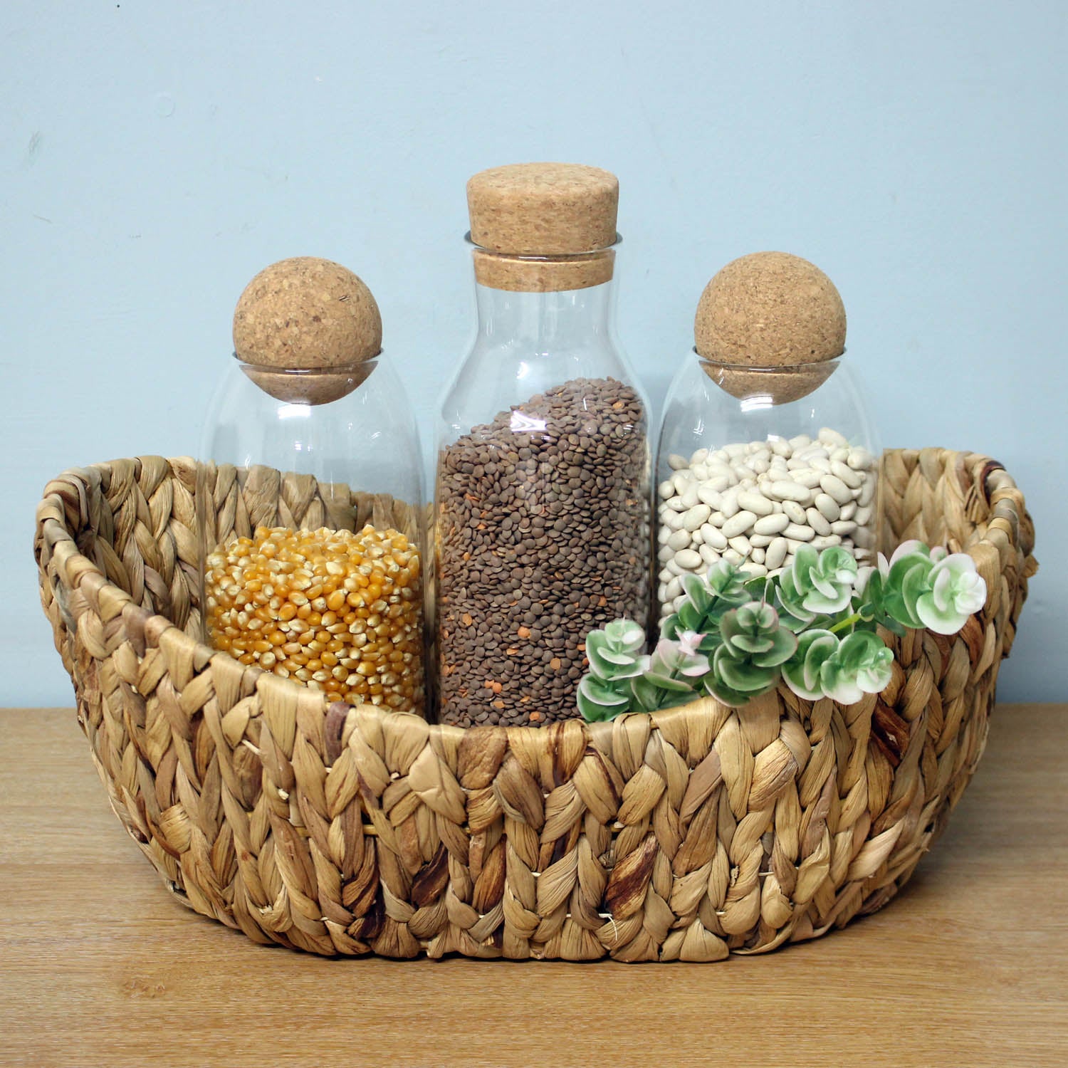 The glass food storage canisters are suitable for storing cereal, flour, rice, sugar, flour, nuts, noodles and beans and etc. With a natural cork cover and clear body, the canister containers always fit well on your kitchen counter.