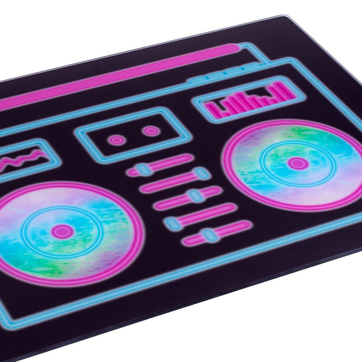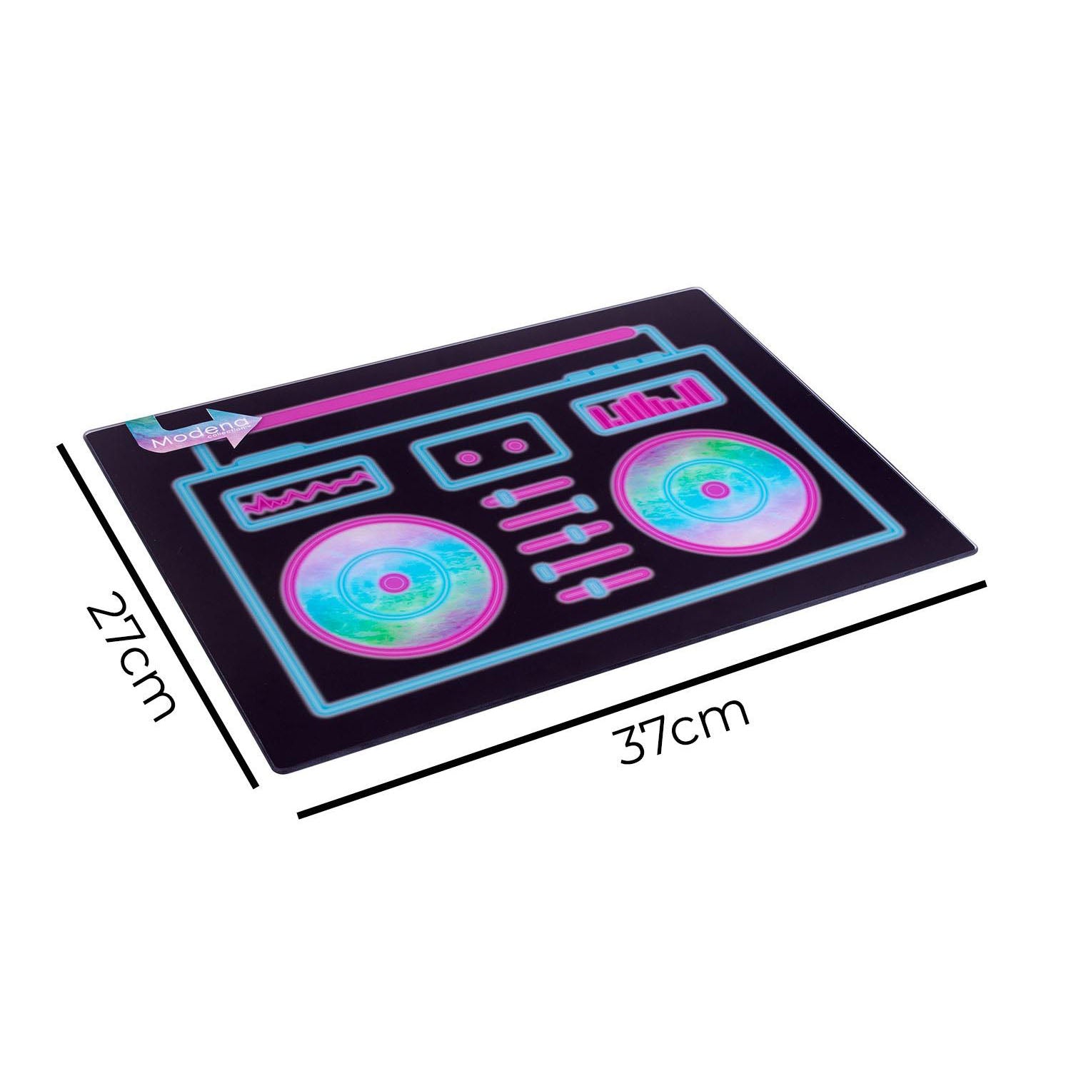 This glass worktop saver is a great addition to any kitchenware range, made from tempered glass for a smooth finish and featuring four raised rubber feet to reduce slippage, available in two assorted neon sounds designs, perfect for keeping surfaces and table tops free from scratches.